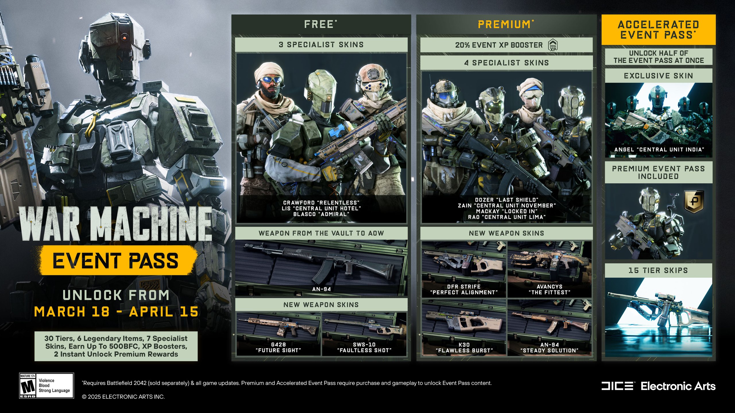 Battlefield 2042 recibe el evento «Máquina de Guerra», que introduce nuevo contenido, incluyendo modos de juego por tiempo limitado, recompensas exclusivas y el regreso del arma clásica AN-94 a All-Out Warfare. Los jugadores podrán desbloquear esta icónica arma durante el evento.