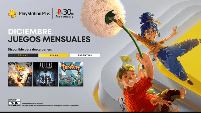 Llegaron los Juegos de diciembre para PlayStation Plus Sony ha revelado los juegos mensuales que llegarán a PlayStation Plus este diciembre, junto con emocionantes actividades para celebrar el 30.º aniversario...