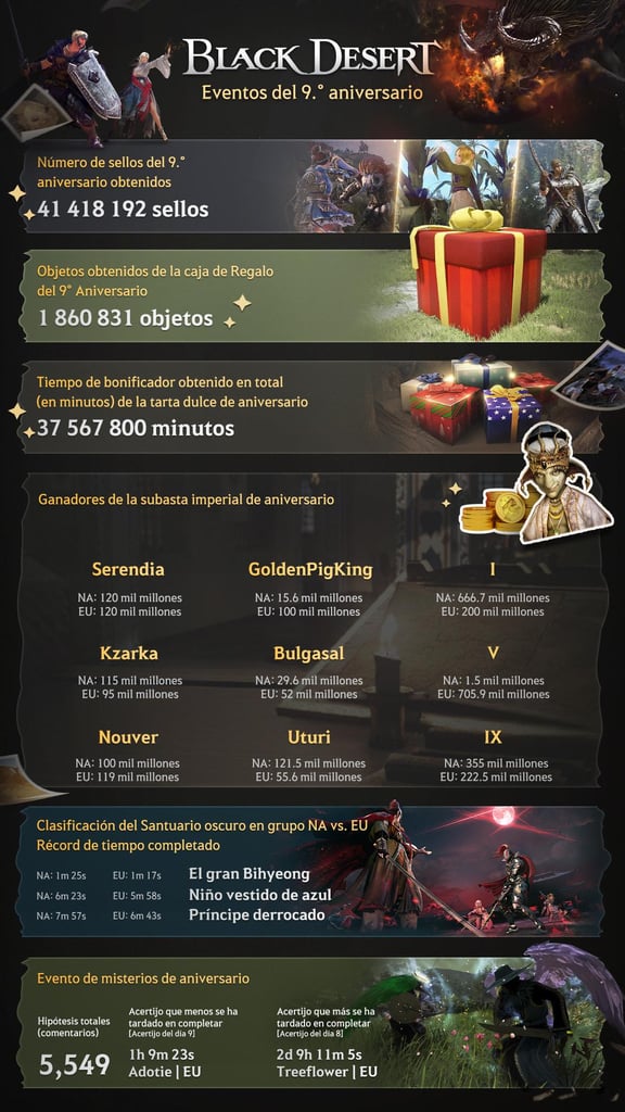 Los aventureros de Black Desert celebran su aniversario con los logros colectivos de la comunidad Pearl Abyss conmemora el noveno aniversario del lanzamiento occidental de Black Desert con una infografía especial que...