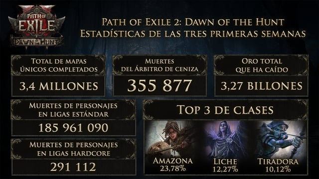 GGG muestra interesantes estadísticas de Path of Exile 2: Amanecer de la Caza Grinding Gear Games ha compartido las primeras estadísticas globales de Path of Exile 2: Amanecer de la Caza,...