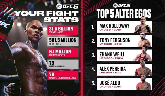 EA SPORTS UFC 5 AGREGA NUEVE ATLETAS NUEVOS, DESAFÍOS DE LA SEMANA DE COMBATE DE UFC 301, NUEVOS ALTER EGOS, Y MÁS. Como parte de nuestra actualización de plantilla más grande en...