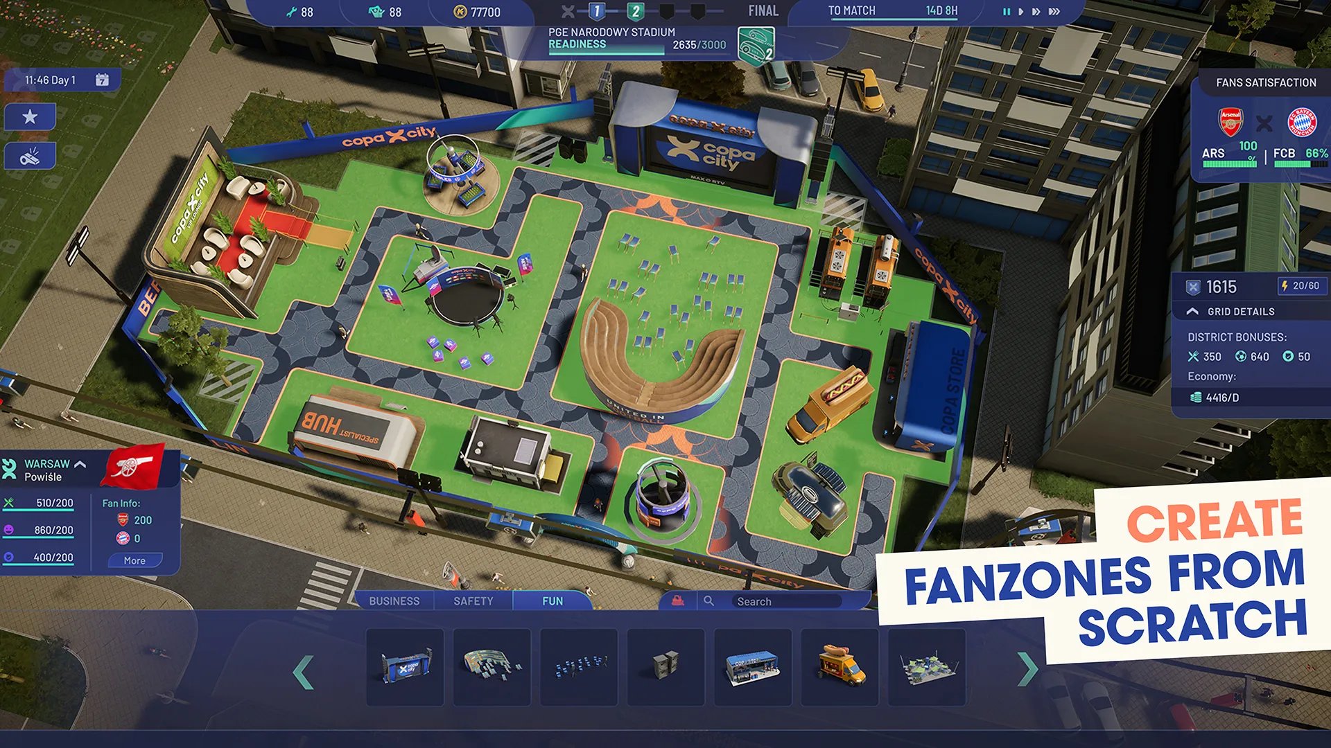 El video recién publicado destaca el enfoque central de Copa City: transformar una ciudad para recibir un partido de alto perfil. El tráiler muestra cómo los jugadores deberán gestionar infraestructura, logística, servicios y elementos claves para construir una experiencia memorable para los aficionados.