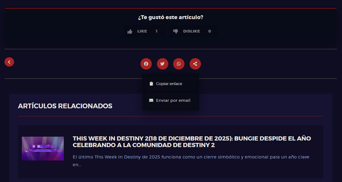 - En artículos normales: aparece justo después del último párrafo, con el texto “¿Te gustó este artículo?”.
