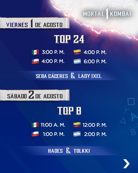 Consejo de El Botón A: Sigue la cobertura de Warner Play Latino en Twitch o YouTube para no perderte los Top 8 de Mortal Kombat 1 y Tekken 8. ¡Guarda estos horarios y apoya a la FGC latina!