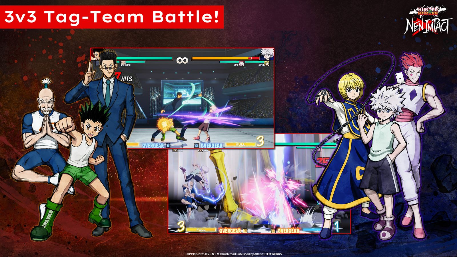 Desarrollado como el primer juego de lucha a gran escala del universo HUNTERxHUNTER, NENxIMPACT presenta combates 3v3 en los que los jugadores deben aprovechar habilidades Nen, sinergias de equipo, combos y estrategias de asistencia para dominar la arena. Además, se han confirmado planes para el Pase de Temporada 1, que incluirá a Neferpitou como primer personaje descargable este otoño de 2025, junto con otros tres luchadores aún por revelar.