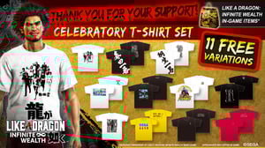 Para conmemorar este récord de ventas y agradecer a los jugadores de todo el mundo su apoyo, en una fecha posterior se lanzará un conjunto gratuito dentro del juego de Playeras de Celebración** para Like a Dragon: Infinite Wealth. Permanece atento a Ryu Ga Gotoku Studio y a las redes sociales de SEGA para recibir más información sobre este pack especial.