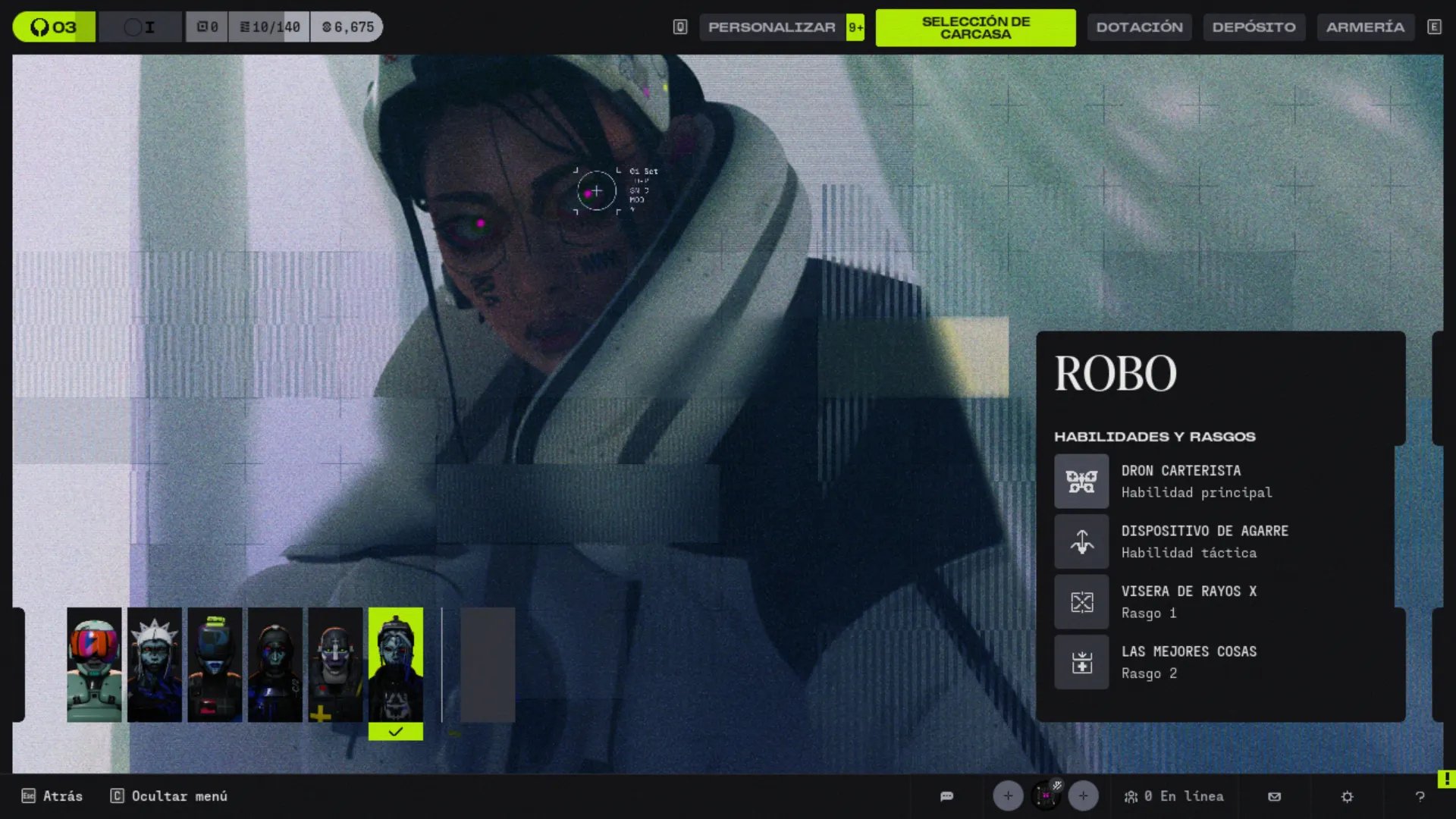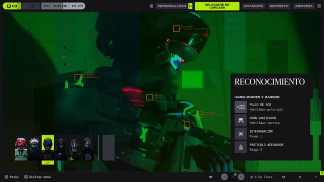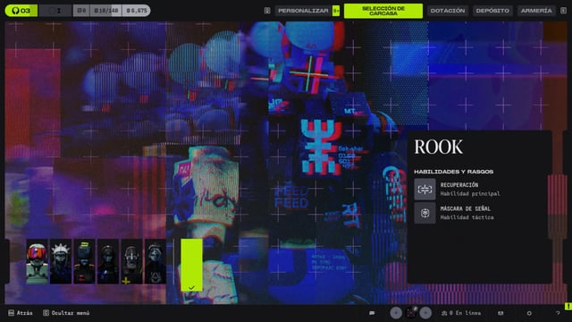 Rook no es una Carcasa completa, sino una opción scavenger solo disponible en solo y en partidas ya iniciadas. No arriesgas nada de tu bóveda y puedes extraer todo lo que consigas. Su habilidad única permite disfrazarse temporalmente como enemigos UESC para infiltrarse sin ser detectado por IA.