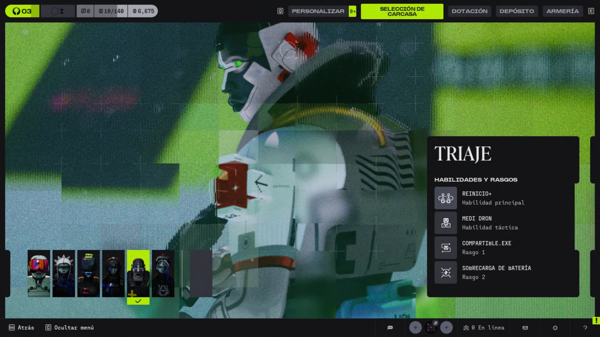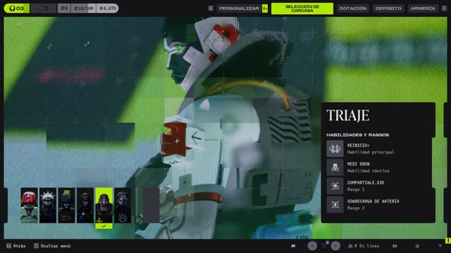 Triage es la Carcasa de Marathon de soporte que mantiene vivo al equipo, con herramientas de curación a distancia y revives que cambian el curso de cualquier run. Es considerada casi obligatoria en squads por su capacidad de sostener peleas largas.