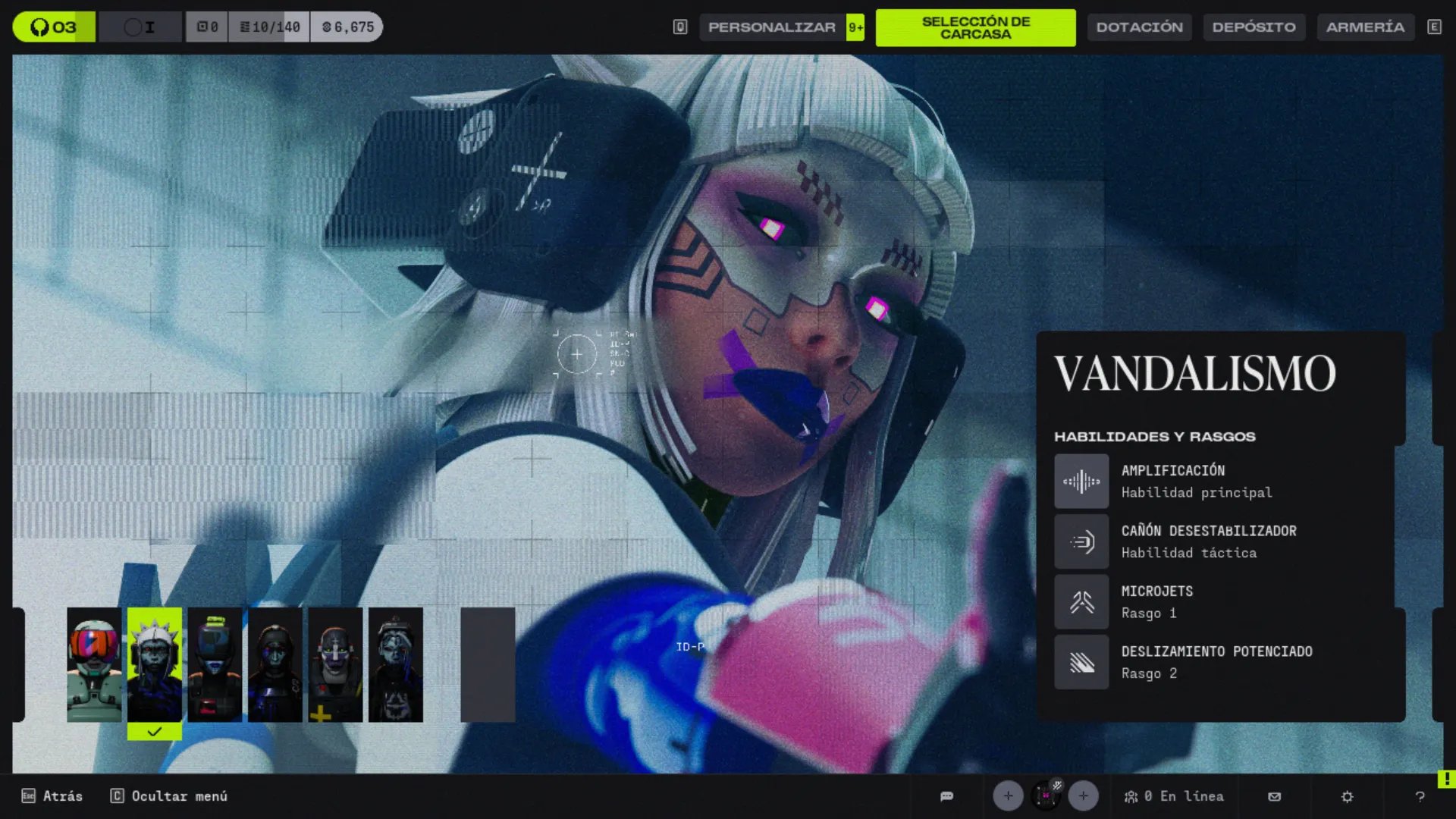 Vandal es la Carcasa de Marathon más ágil y caótica, ideal para jugadores que aman el movimiento constante y el control de espacio a través de desplazamientos impredecibles. Su kit genera alto calor pero recompensa la agresividad creativa.