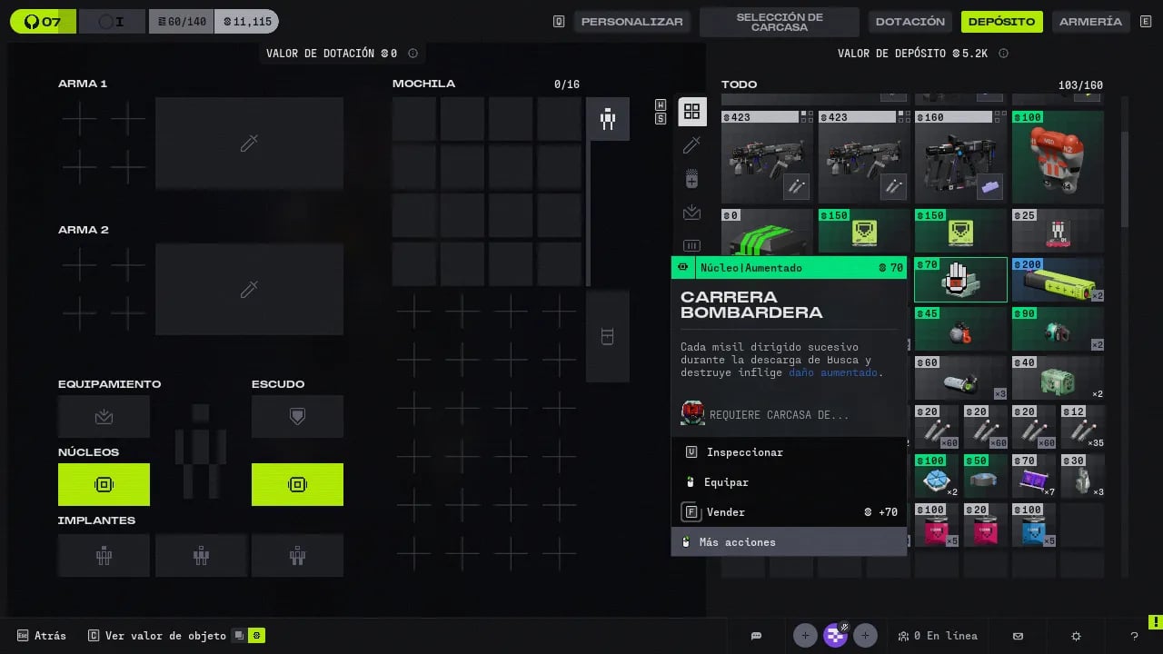 Busca implants y cores primero, ya que mejoran permanentemente tus habilidades y shells. Prioriza mochilas grandes, armas de alto valor y recursos de facciones específicas (como lockboxes o municiones para Traxus). No lootes todo indiscriminadamente; enfócate en lo que necesitas para tu run actual.