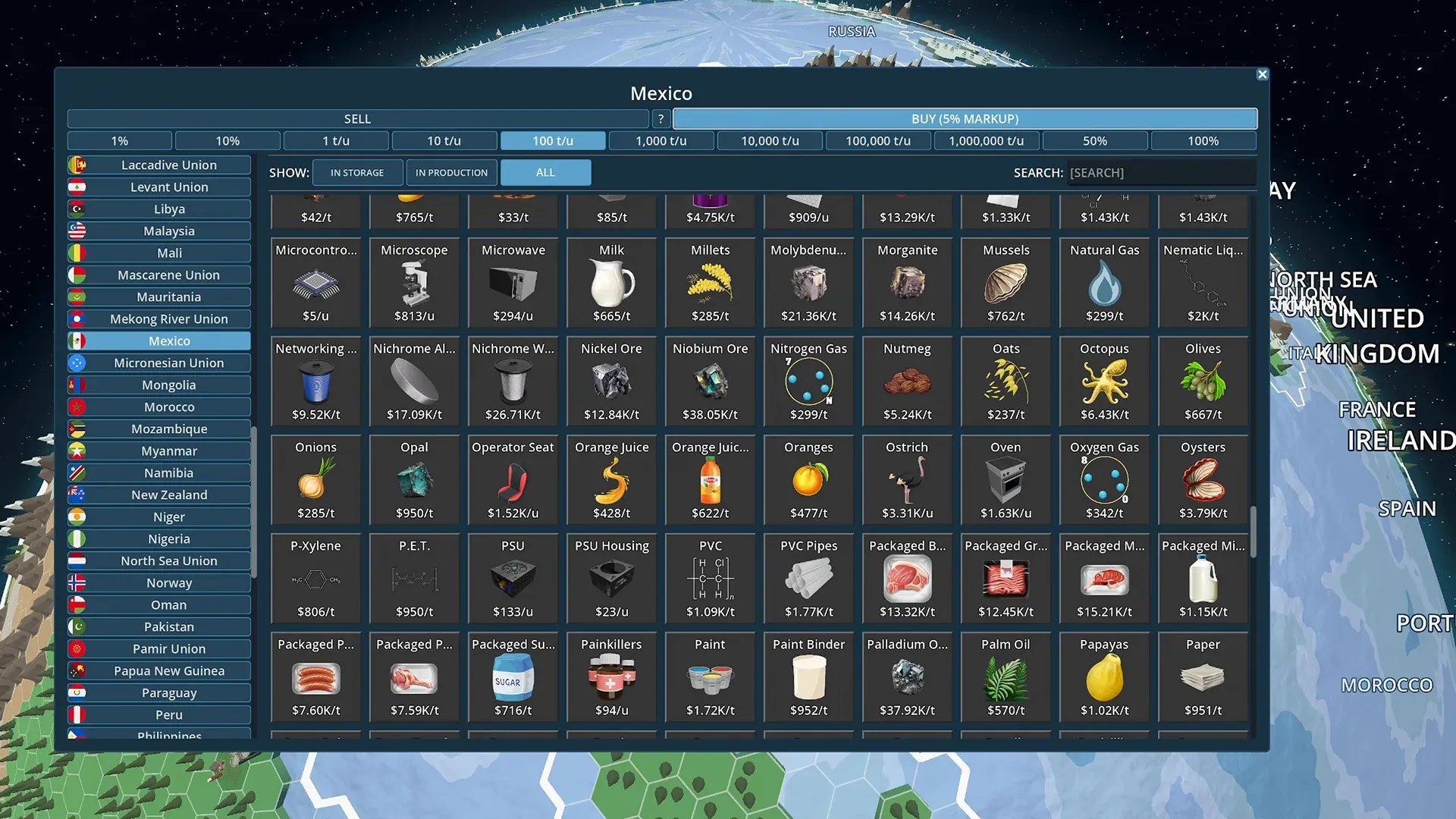 Los precios fluctúan constantemente según las condiciones del mercado y las decisiones del jugador, lo que permite influir directamente en la economía global del juego. Este sistema añade una capa estratégica que obliga a adaptarse a escenarios cambiantes y a anticipar tendencias.