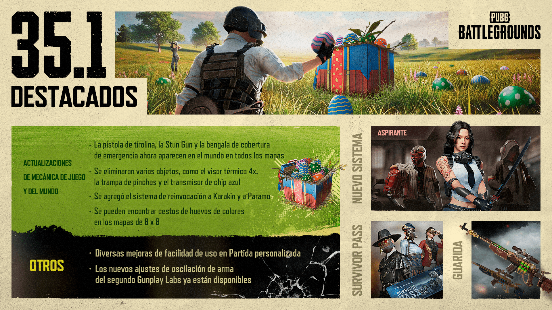 Para más información sobre PUBG: BATTLEGROUNDS y todas sus actualizaciones, visita el sitio web oficial: pubg.com