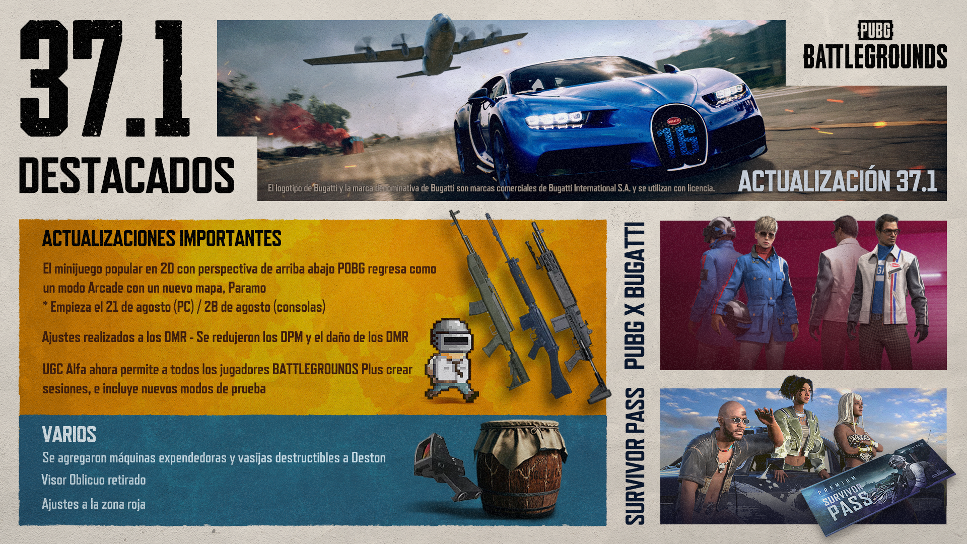 PUBG: BATTLEGROUNDS presenta los hipercoches Bugatti, la expansión UGC Alpha y el regreso de POBG en la actualización 37.1