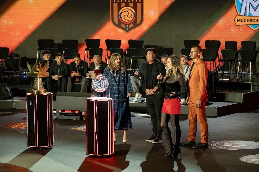 Sofía Reyes, Iván Zamorano y Nahuel Guzmán sortearon los turnos de los equipos.