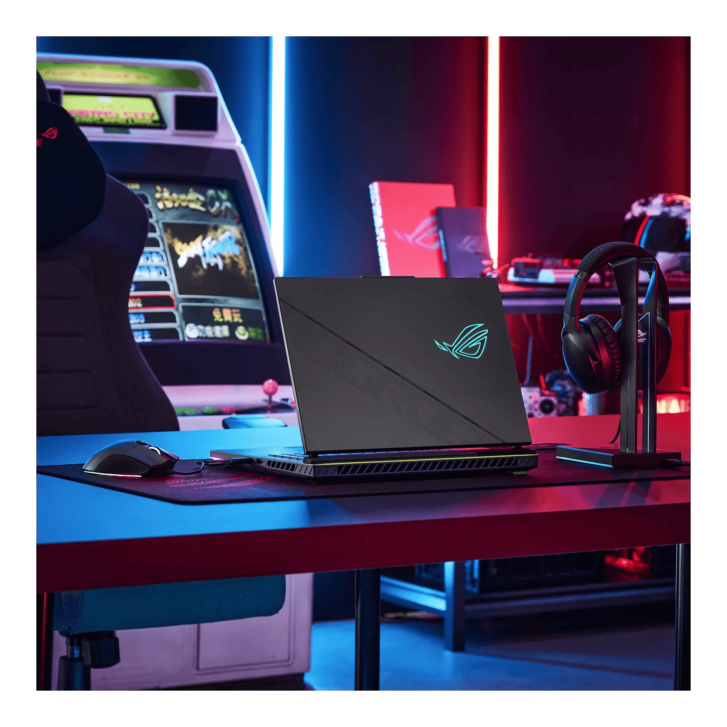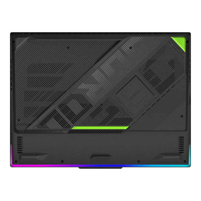 El chasis combina elementos ciberpunk con patrones pixelados en la tapa y ventilación trasera inspirada en graffiti, disponible en colores Eclipse Gray discreto y Volt Green audaz. La construcción robusta incluye una agarradera de goma para transporte seguro y una relación pantalla-cuerpo del 90 por ciento, con bordes ultrafinos que maximizan la inmersión. El teclado CoolZone incorpora orificios de ventilación alrededor de las teclas WASD para mantener temperaturas bajas durante uso prolongado.
