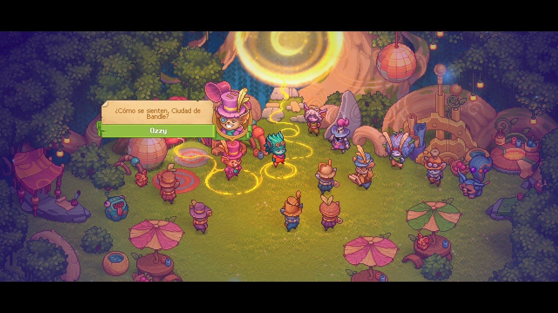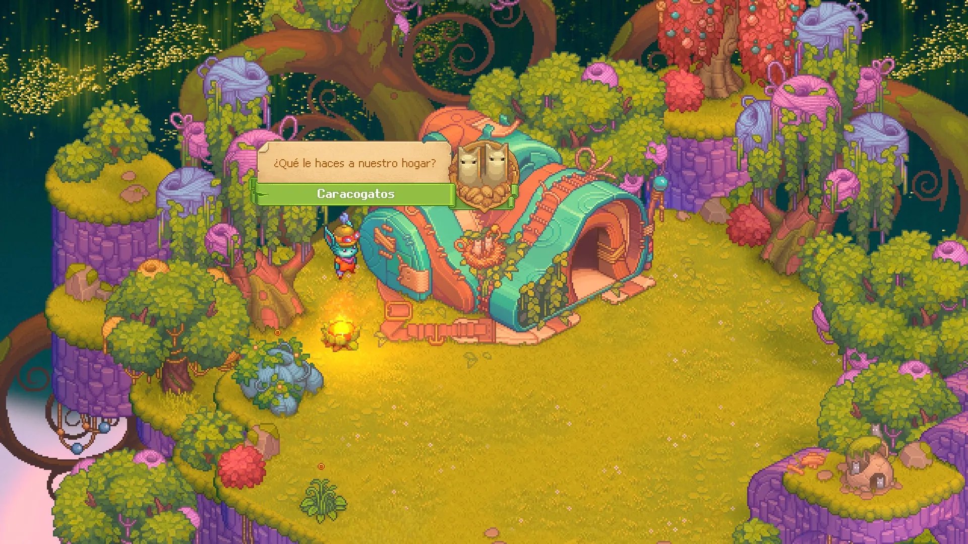 En cuanto al apartado visual, «Bandle Tale: A League of Legends Story» nos presenta un estilo pixel art super estilizado, con colores vibrantes y una hermosa atención al detalle. Cada región se siente única y especial, con pequeñas animaciones que ayudan a darle vida. Todos los personajes están muy bien detallados y animados, con animaciones específicas para distintas acciones y realizadas muy bien en pixel art. Gracias a esto, el juego corre con una excelente estabilidad y no requiere gran uso de máquina. En cuanto al sonido tenemos un gran problema; no sabemos si es por la calidad de la exportación o la importación de los archivos de audio, pero tanto los efectos de sonido como la música se sienten comprimidos, con perdida de calidad notorio durante todo el juego (como en juegos de los años 90), y esto destruye cualquier tipo de inmersión o maravilla durante las sesiones de juego.