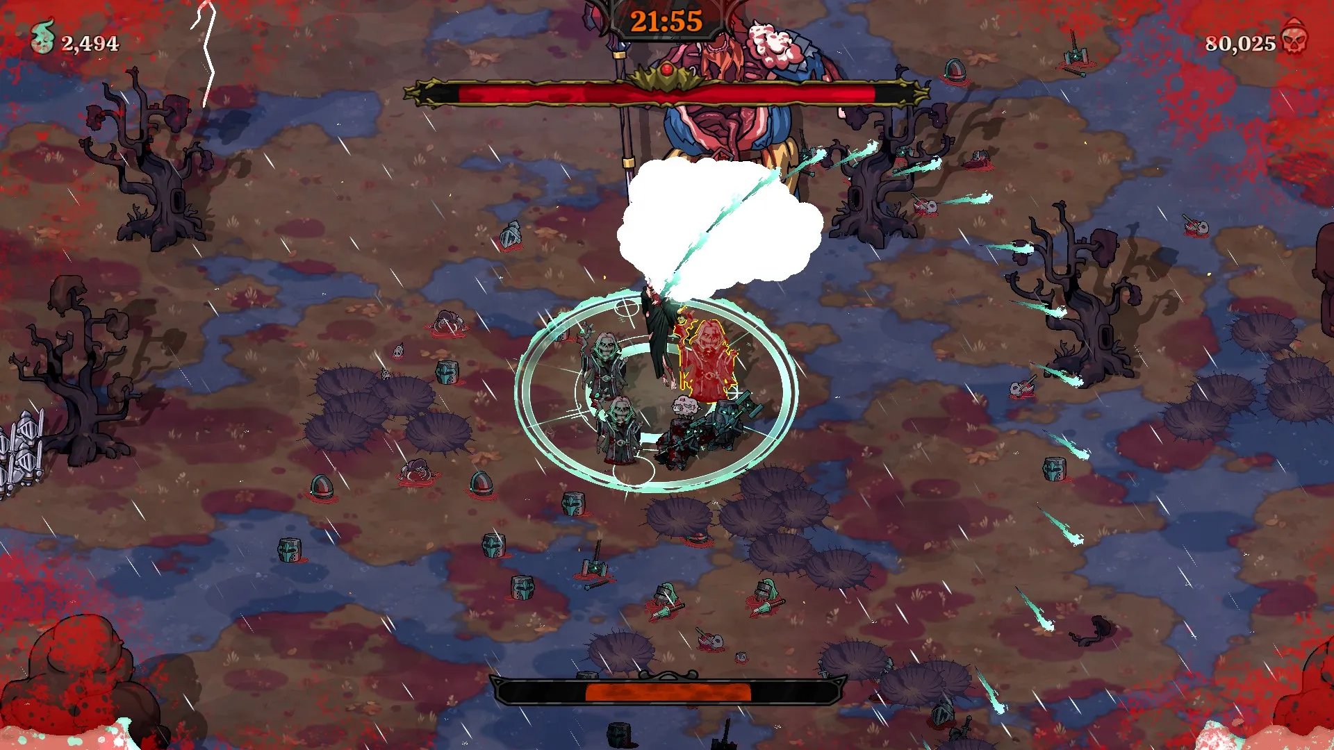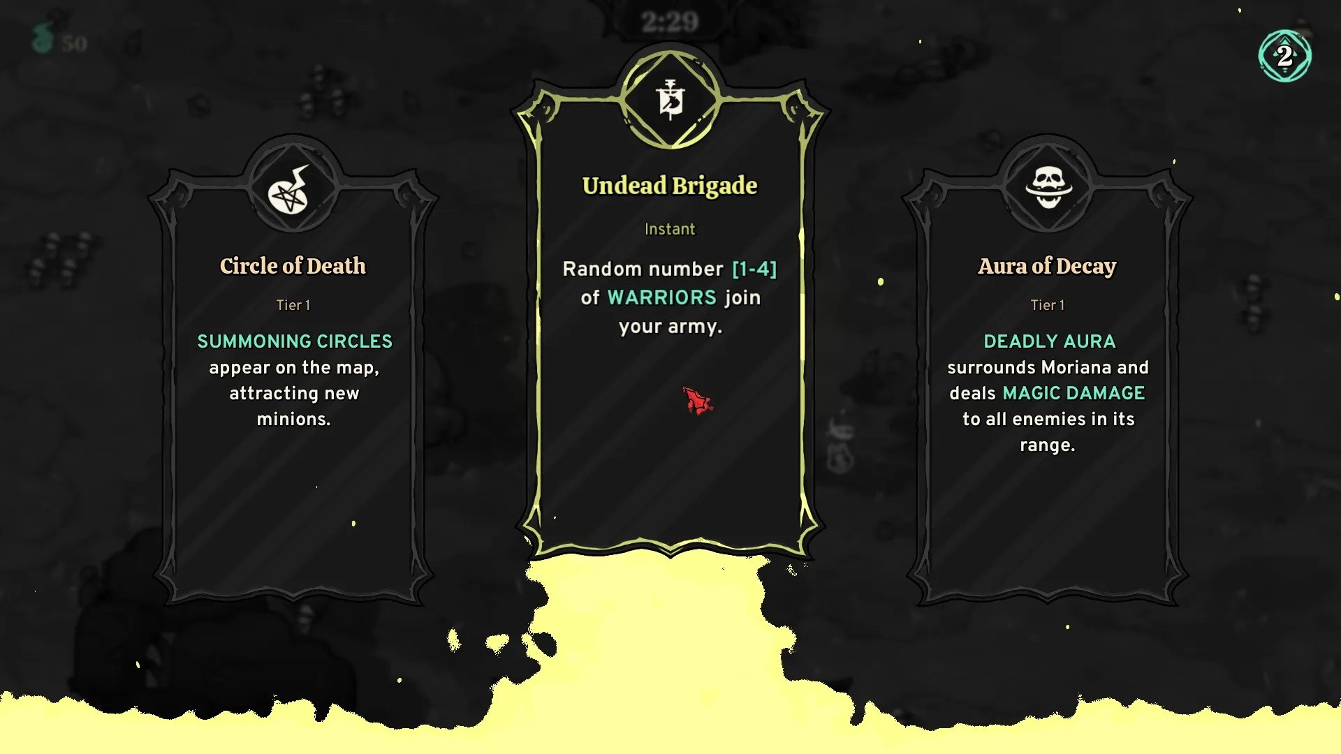 Cada enemigo que revivamos, nos dará un alma, y estas almas son las que utilizaremos en la guarida de Moriana para aumentar nuestras estadísticas de juego como la cantidad de cadáveres que podemos revivir al mismo tiempo, la velocidad de resurrección, la velocidad de movimiento o salud de Moriana. Esto hace que cada expedición rinda frutos y nos permita avanzar cada vez más lejos en los niveles.