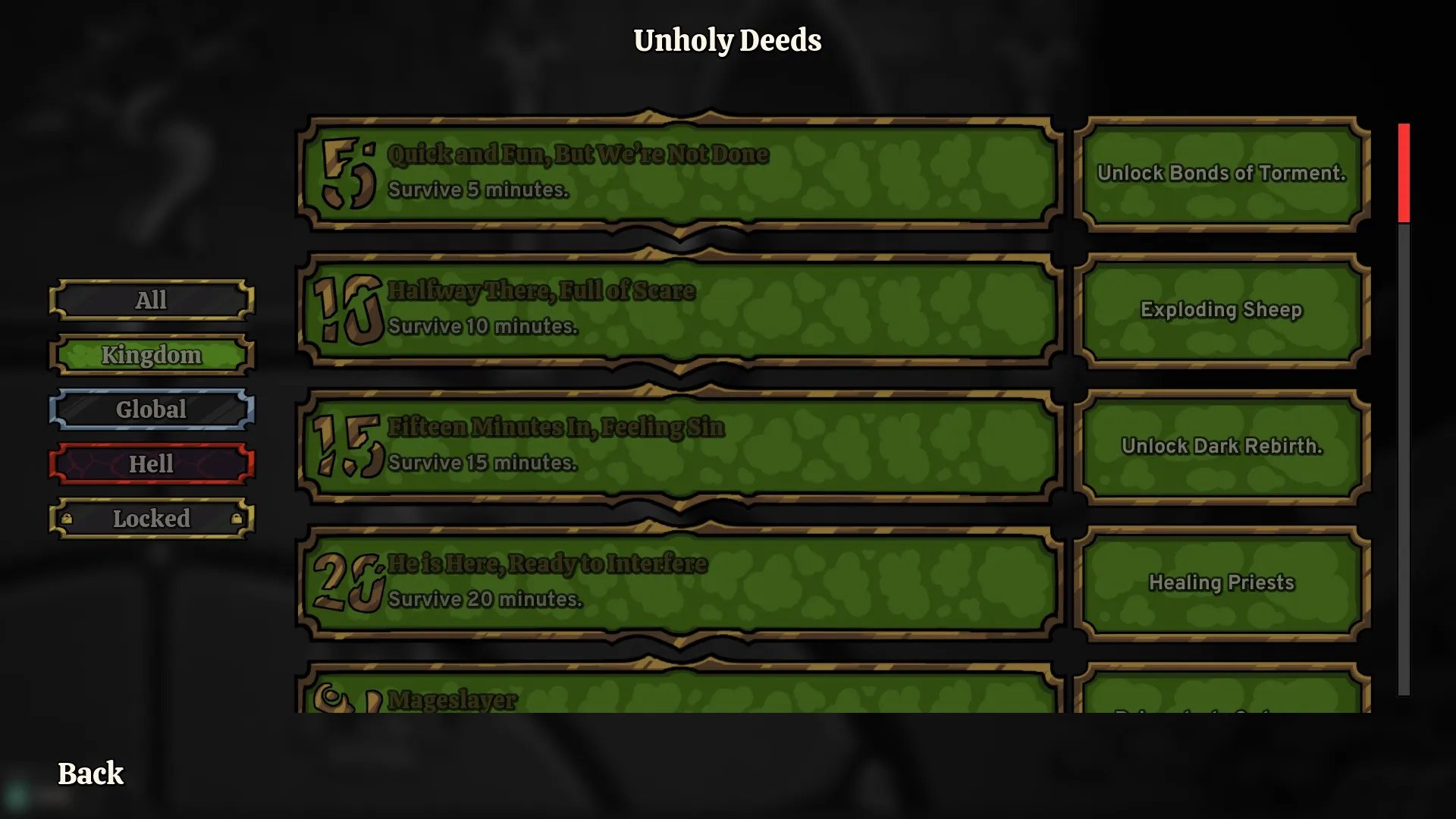 Durante los asedios en Be My Horde, al revivir enemigos, también obtendremos experiencia, y al llenarla, subiremos de nivel, lo cual nos permite acceder a distintos beneficios que únicamente aplican para el asalto que estamos haciendo. Podremos conseguir un ataque en área que hace daño constante, misiles más mágicos que pueden mejorarse para hacer más daño a múltiples enemigos, cadenas de dolor que hacen daño constante a quien esté en contacto, circulos de invocación para traer más sirvientes o urnas de curación.