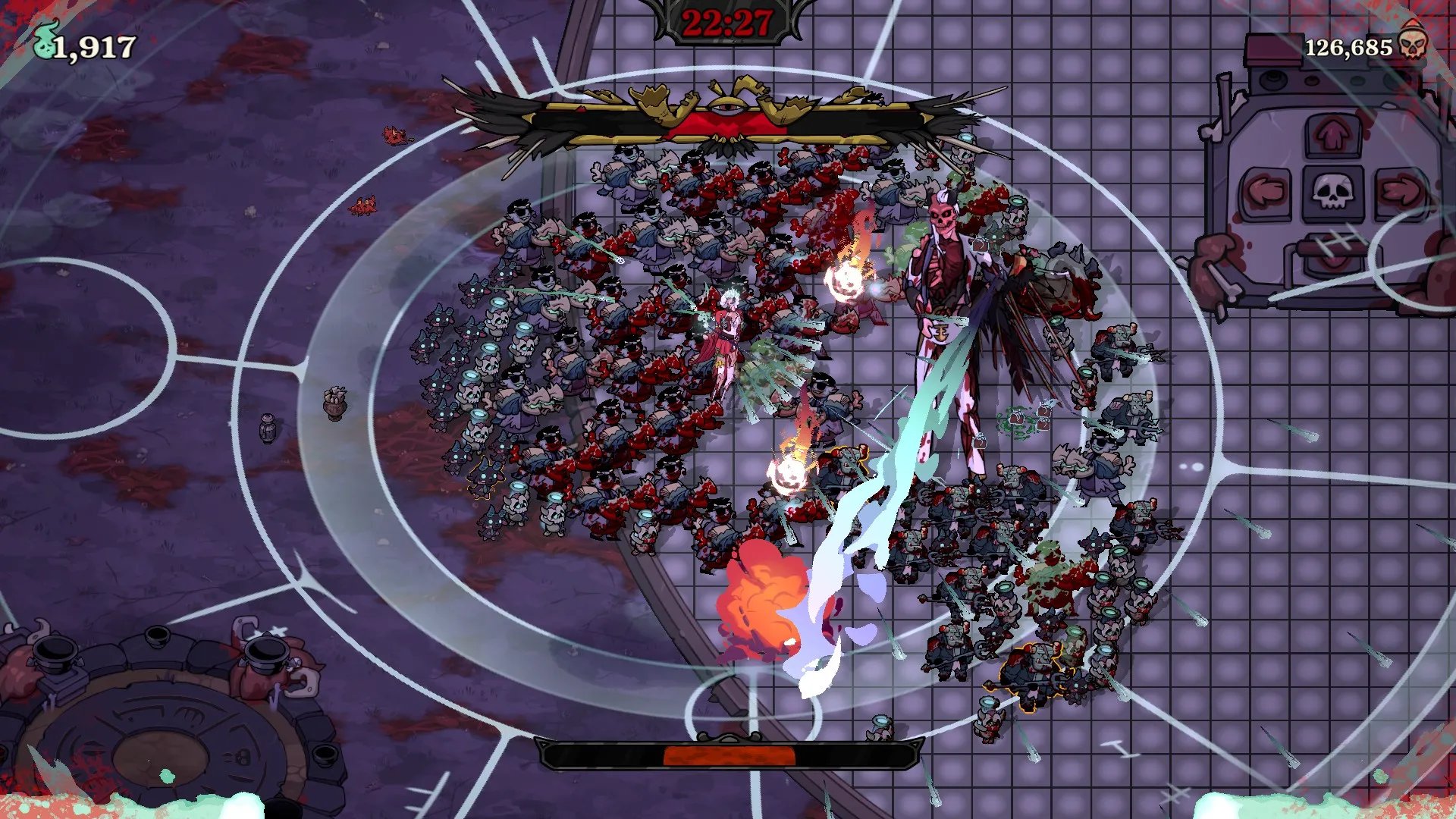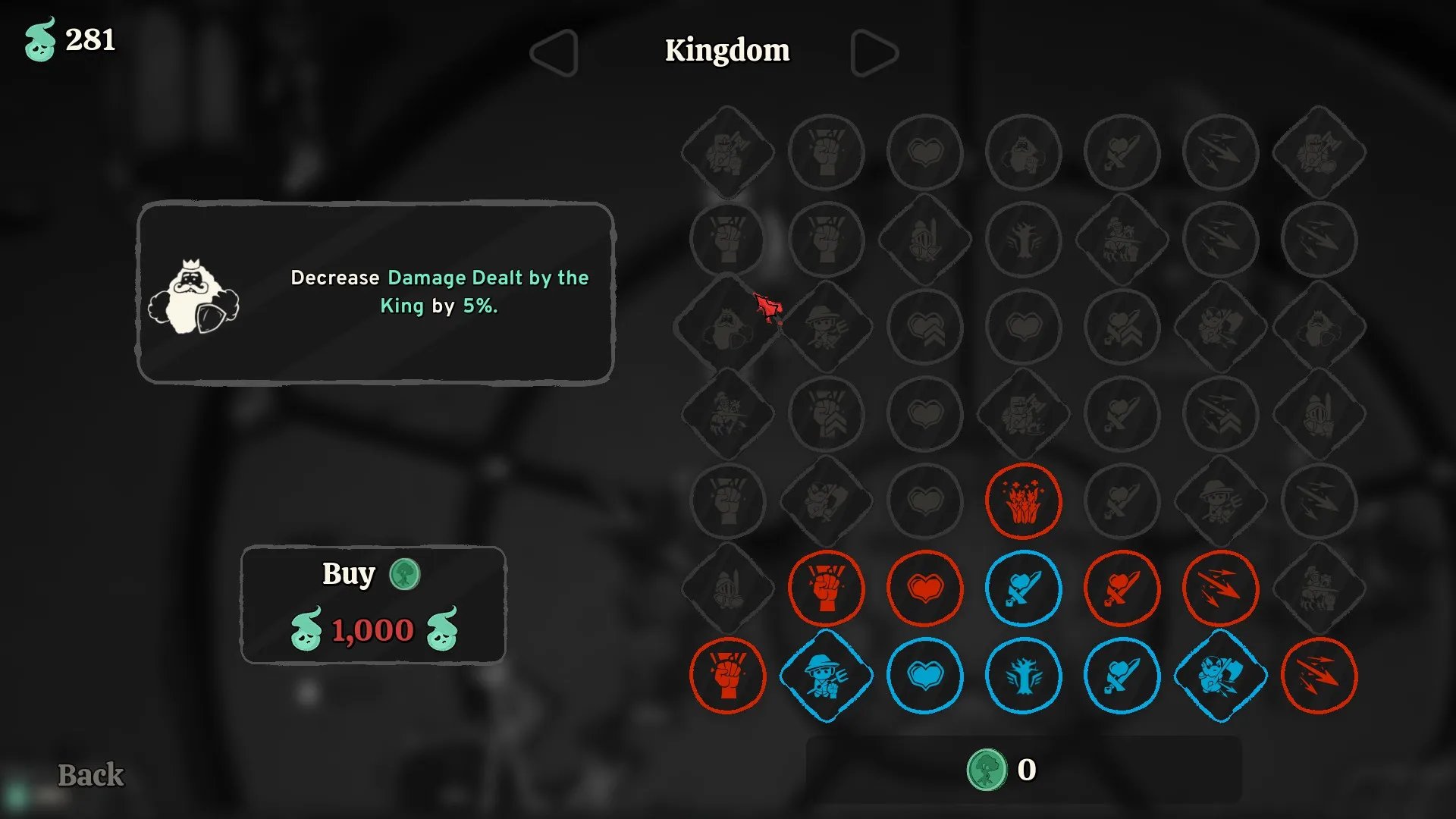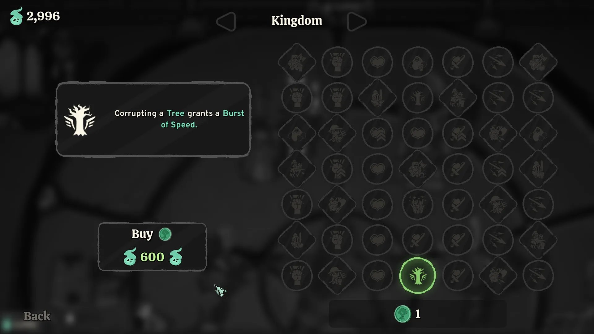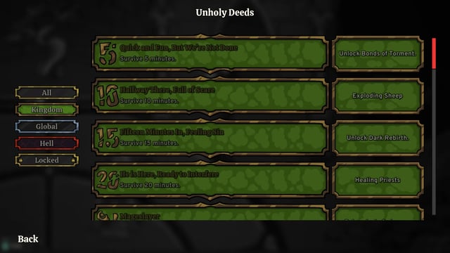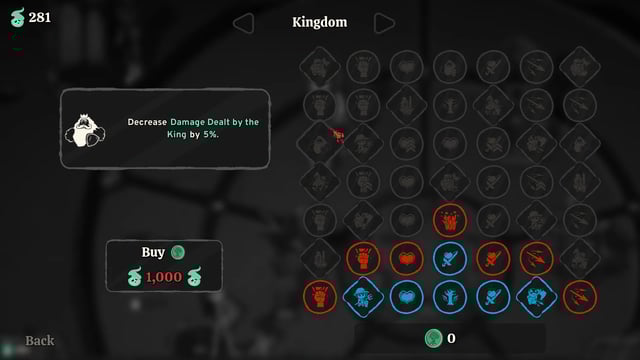 Luego de superar el primer nivel, abriremos un árbol de mejoras, aplicables a cada área en particular, en donde a cambio de almas que convertiremos en tokens, podremos mejorar las estadísticas de manera permanente a nuestros sirvientes revividos: más velocidad de ataque, mayor daño, recuperación de vida al golpear a otro enemigo, entre otros. Esto hace que cada asalto se vuelva beneficioso y productivo.