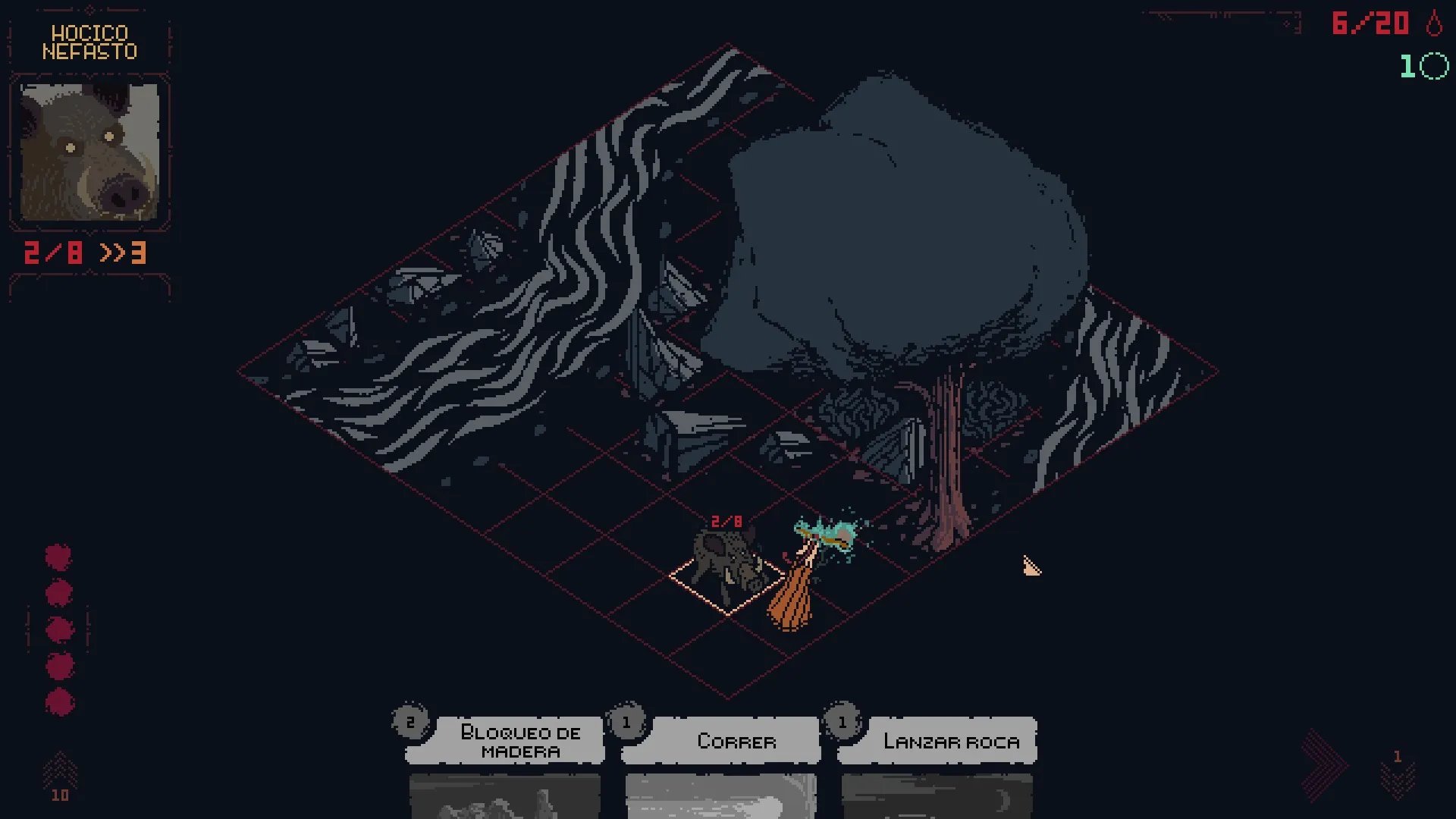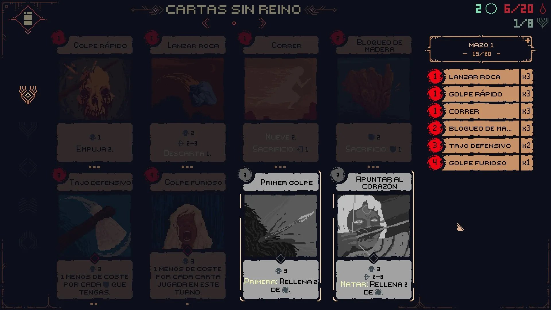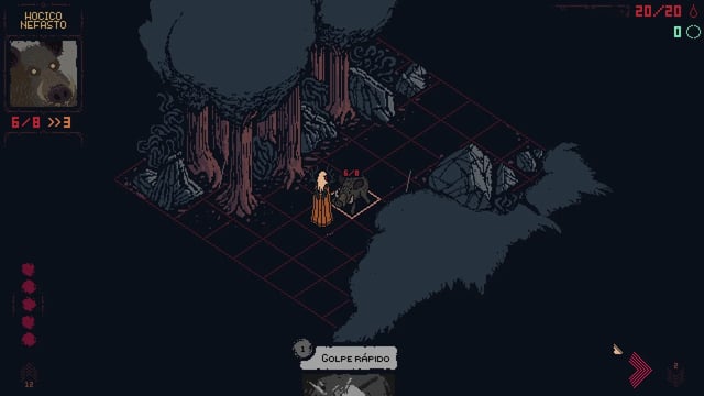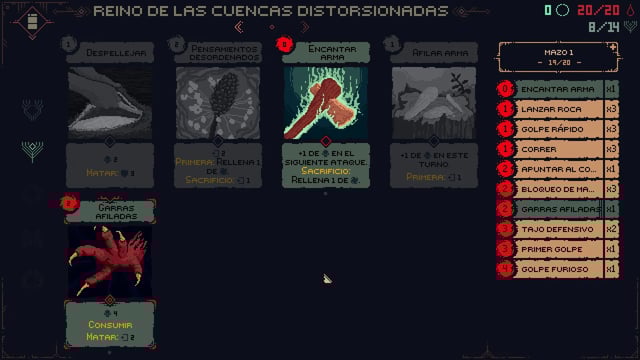 Esto hace que siempre suframos daño en todos los combates, lo que hace que tengamos que regresar a las piedras de curación; el problema de esto es que hace que todos los enemigos reaparezcan y tengamos que combatirlos una y otra vez para siquiera avanzar. Al final, la mejor estrategia termina siendo conseguir un grupo de enemigos que podamos derrotar facilmente, farmear los Aullidos de Muerte y recursos para empoderarnos y conseguir mejores cartas, y poder avanzar. Sumado a que tampoco contamos con un botón de retroceso, si activamos una carta que no queríamos, habremos perdido nuestros recursos o peor aun, arriesgarnos a quedar mal posicionados y perder el combate.