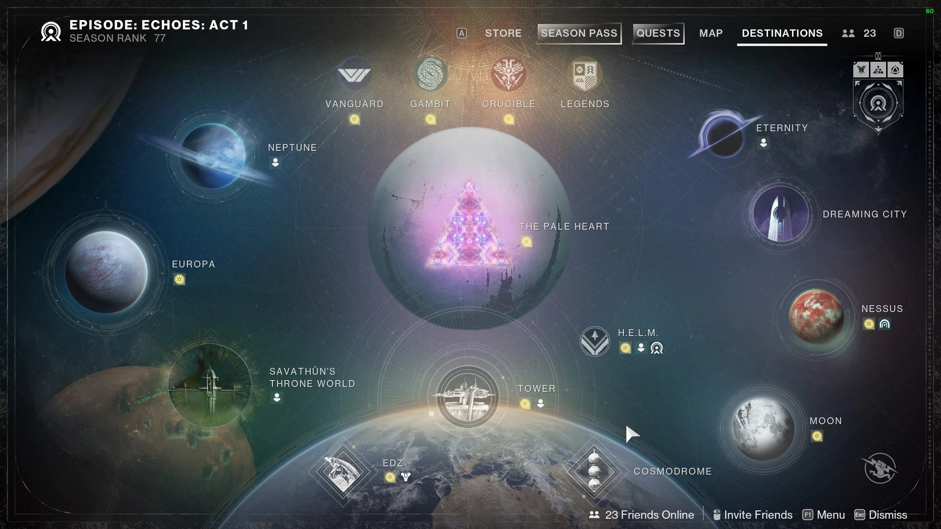 Una adición que ha tenido el juego es el sistema de Traza caminos, una forma de poder cumplir tareas especificas, ya sean de locación como el Corazón Pálido, como de actividades del núcleo principal (Vanguardia, Gambito y Crisol). Como funciona es una serie de nodos que se encuentran conectados y que empiezan en la izquierda y concluyen con una gran recompensa a la derecha; cada nodo tiene un requerimiento especifico para completarlo: matar X cantidad de enemigos, utilizar un tipo especifico de armas, etc. Al completar el nodo, se creará un camino al siguiente nodo a la derecha, y a cualquier nodo adyacente. De esta forma, si queremos completar rápidamente el Traza caminos, seleccionaremos las actividades que más queramos jugar y completaremos el camino al final rápidamente, o podemos completar todos los nodos para conseguir más experiencia. Una vez reclamadas las recompensas del Traza caminos, se puede reiniciar y completar una serie de tareas nuevas para reclamar nuevas recompensas. Este sistema reemplaza el previamente existente de Recompensas que tenían las actividades mencionadas.