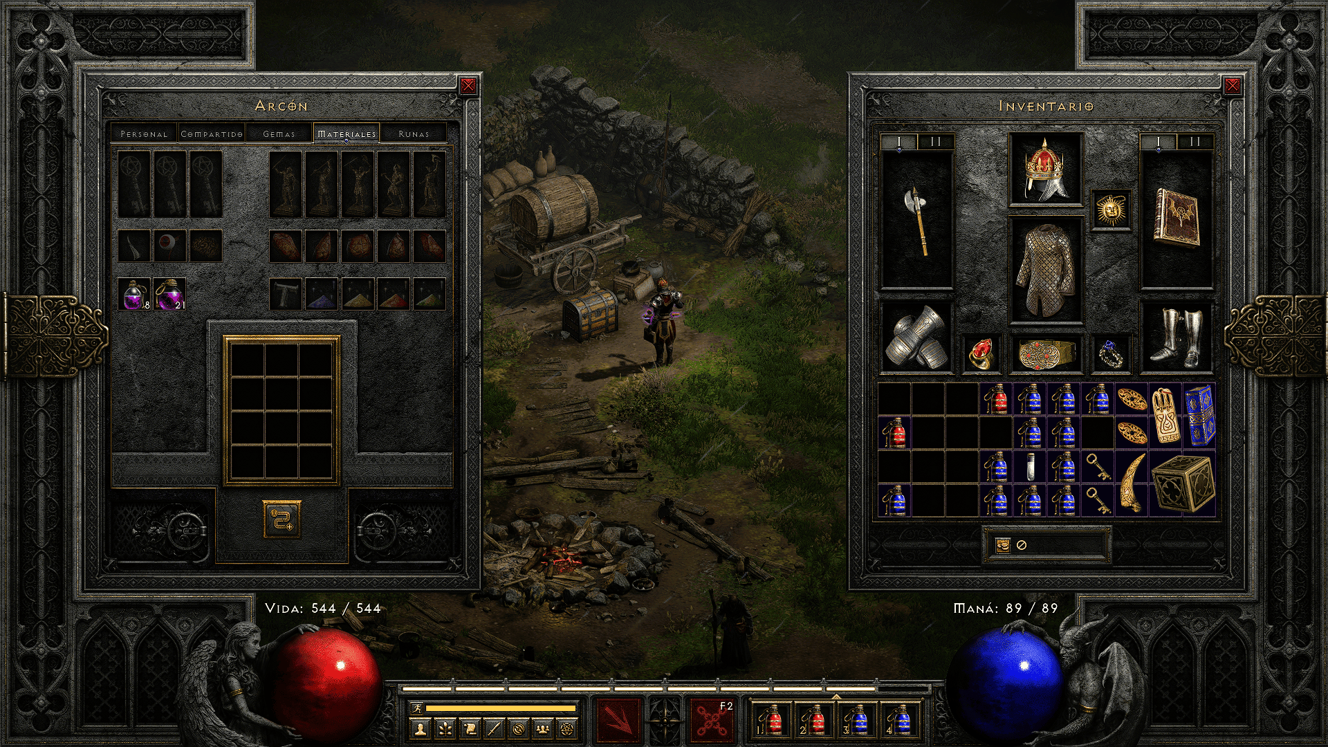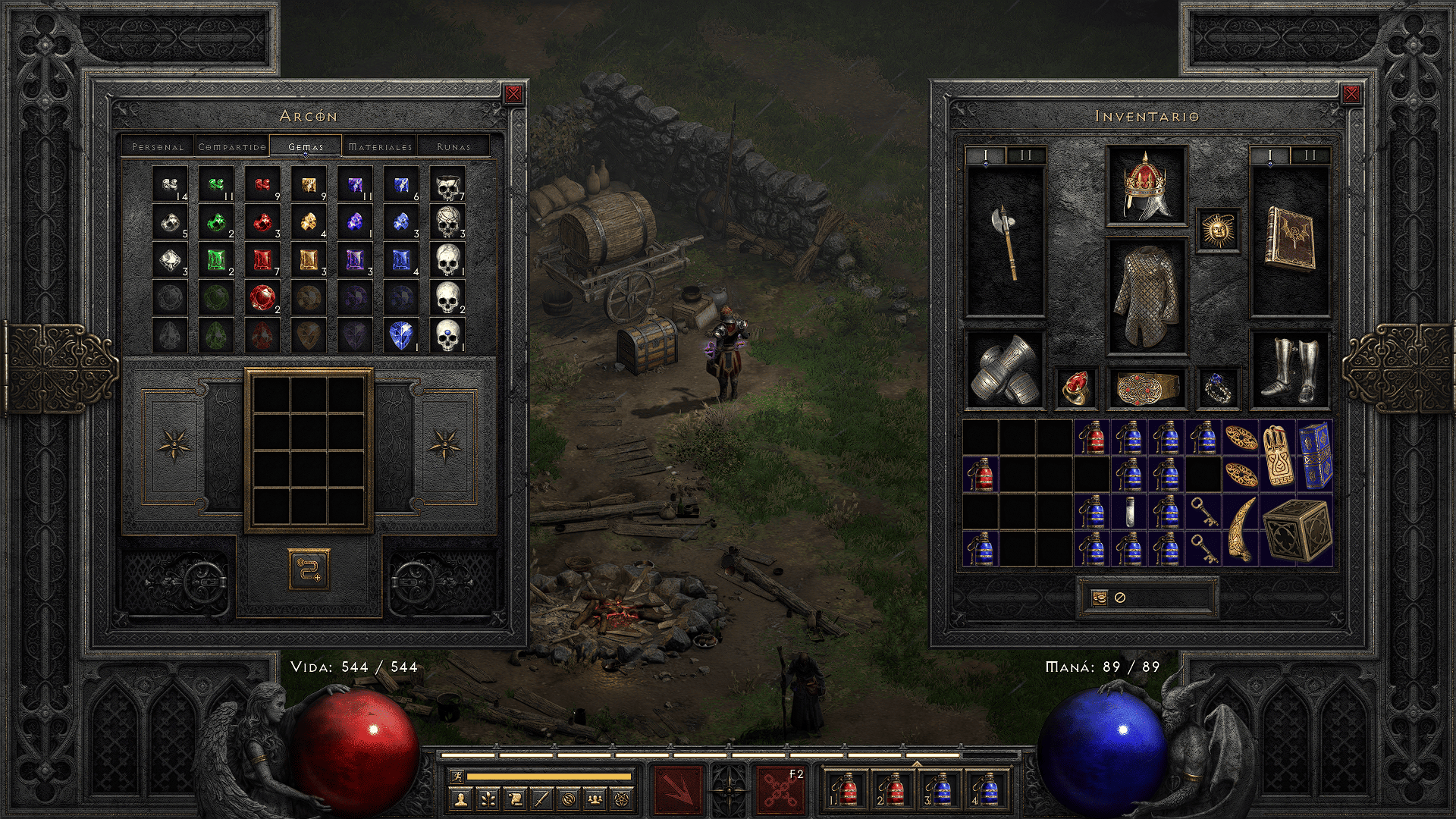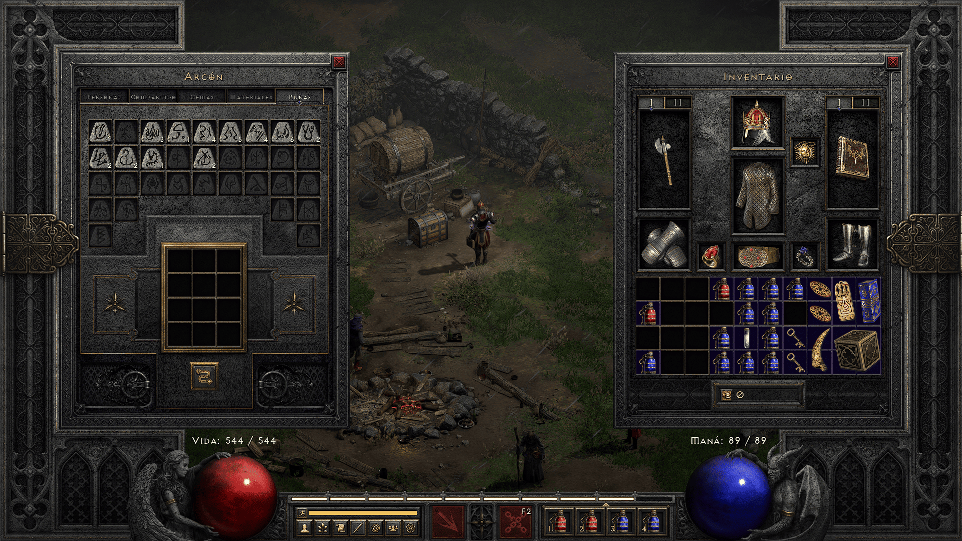 - Rediseño del alijo eficiente: 5 pestañas generales, dedicadas a runas/gemas/materiales, con apilado de objetos para gestión rápida.