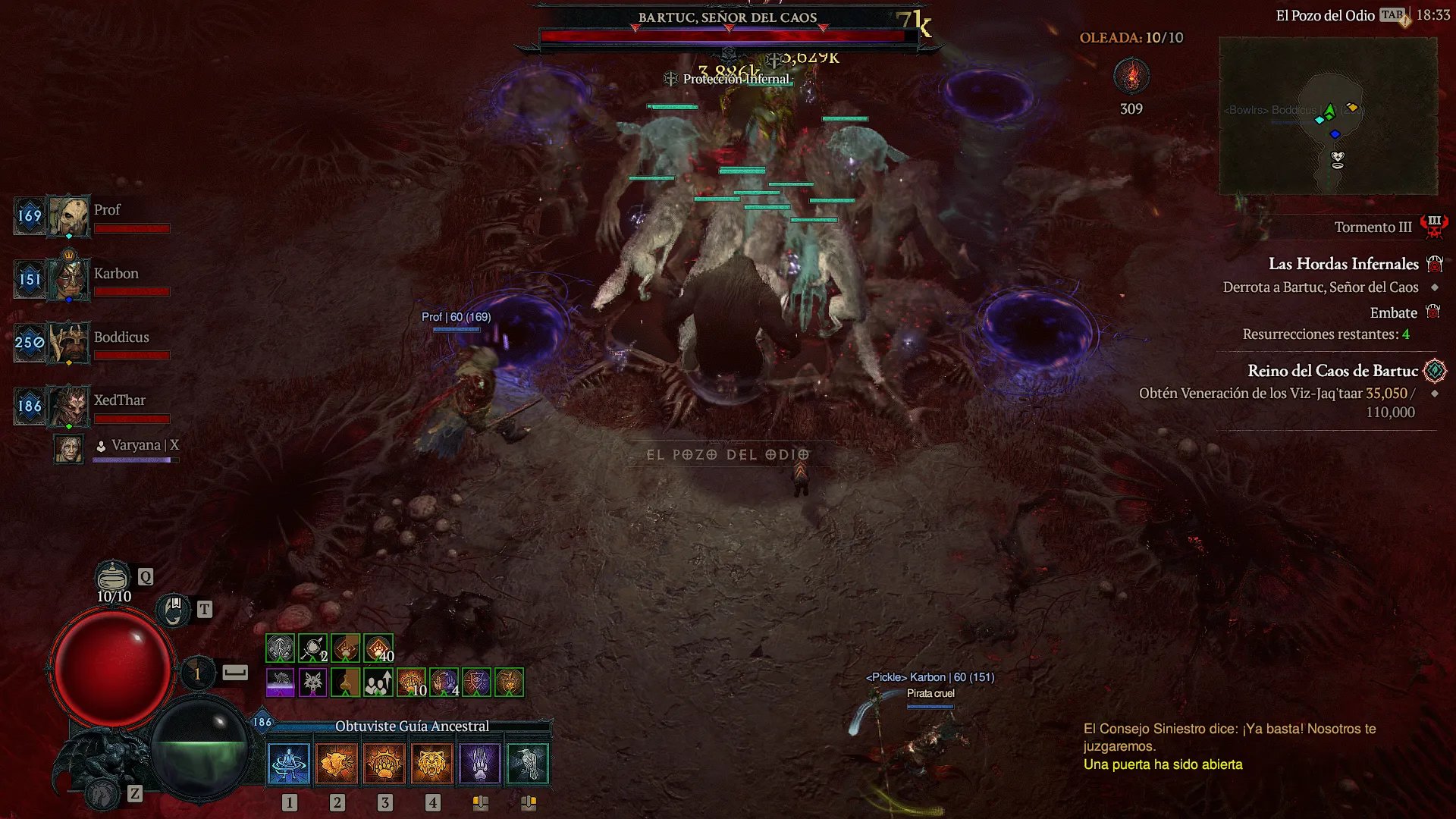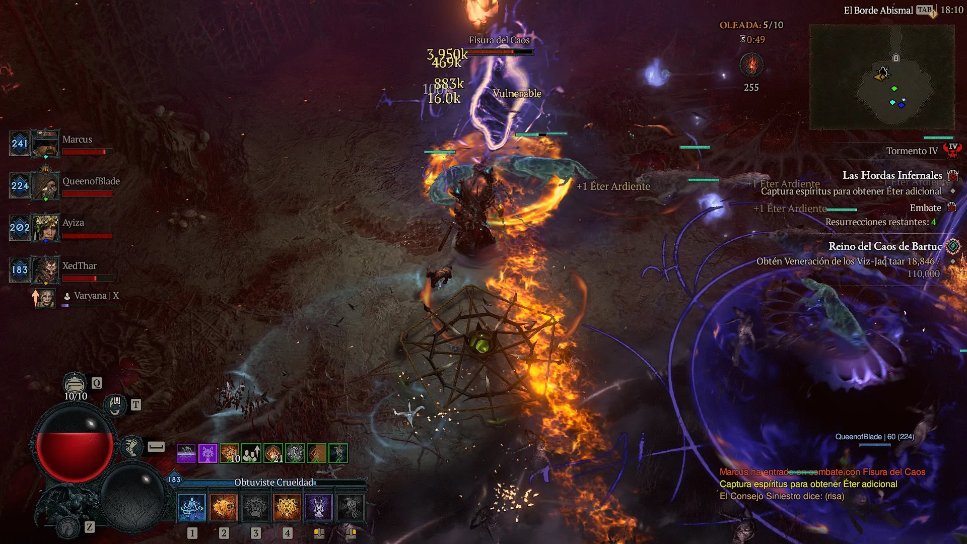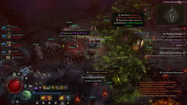 La renovación de las Hordas Infernales introduce Ofrendas del Caos, activables durante oleadas para desatar Chaos Waves que alteran el entorno y multiplican enemigos, permitiendo seleccionar variantes como hordas de élite o jefes adicionales. Esta mecánica transforma recorridos estándar en desafíos explosivos, con recompensas escaladas por dificultad que incluyen materiales legendarios y objetos de caos para builds específicas. En multijugador, las oleadas fomentan coordinación en grupos de hasta 4 jugadores, aunque la aleatoriedad de las Waves genera frustración en grupos desorganizados, y la dependencia en RNG para drops limita la satisfacción a largo plazo.
