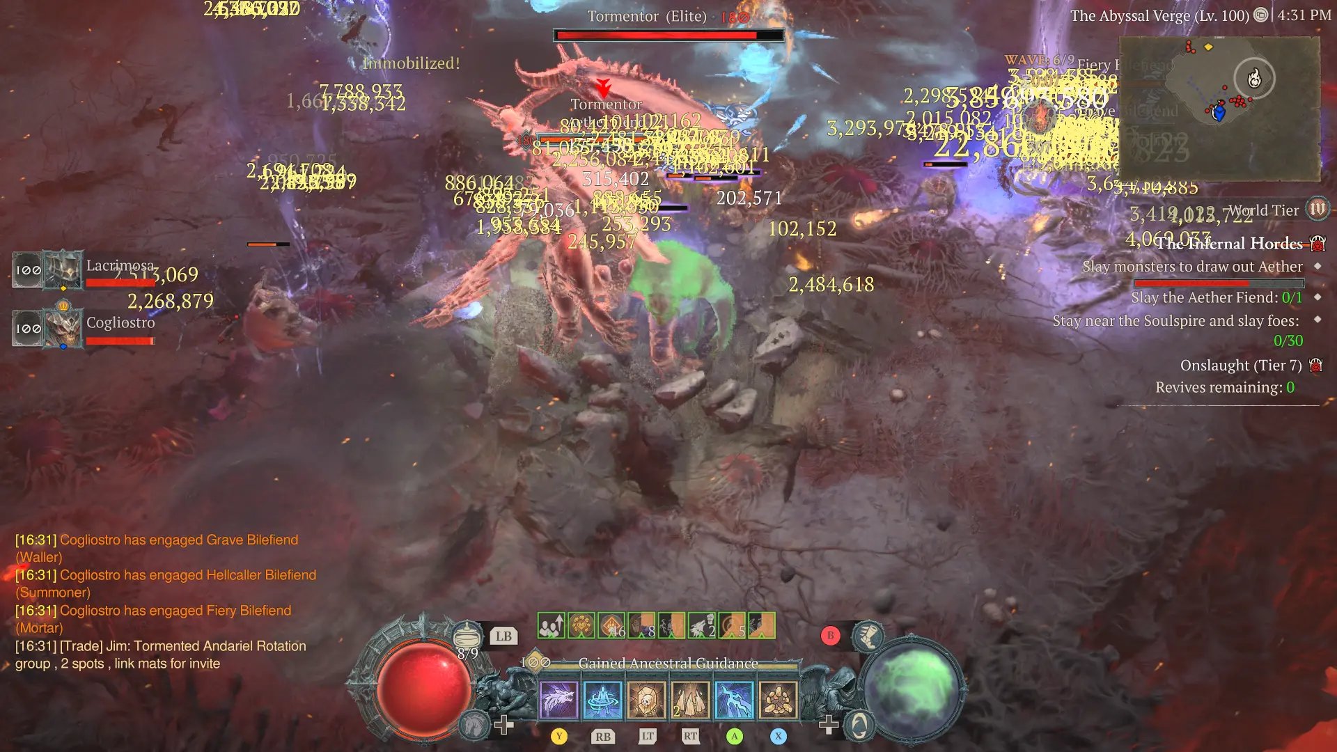 - Optar por la «lluvia ardiente», que genera más infernales y, por ende, más Aether.