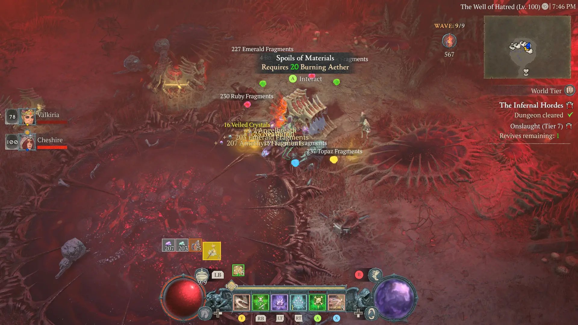 El Aether ardiente es la moneda principal en las Hordas Infernales. Se obtiene derrotando enemigos y completando oleadas. Al final de cada sesión, los jugadores pueden usar el Aether acumulado para abrir cofres con diferentes niveles de recompensas.