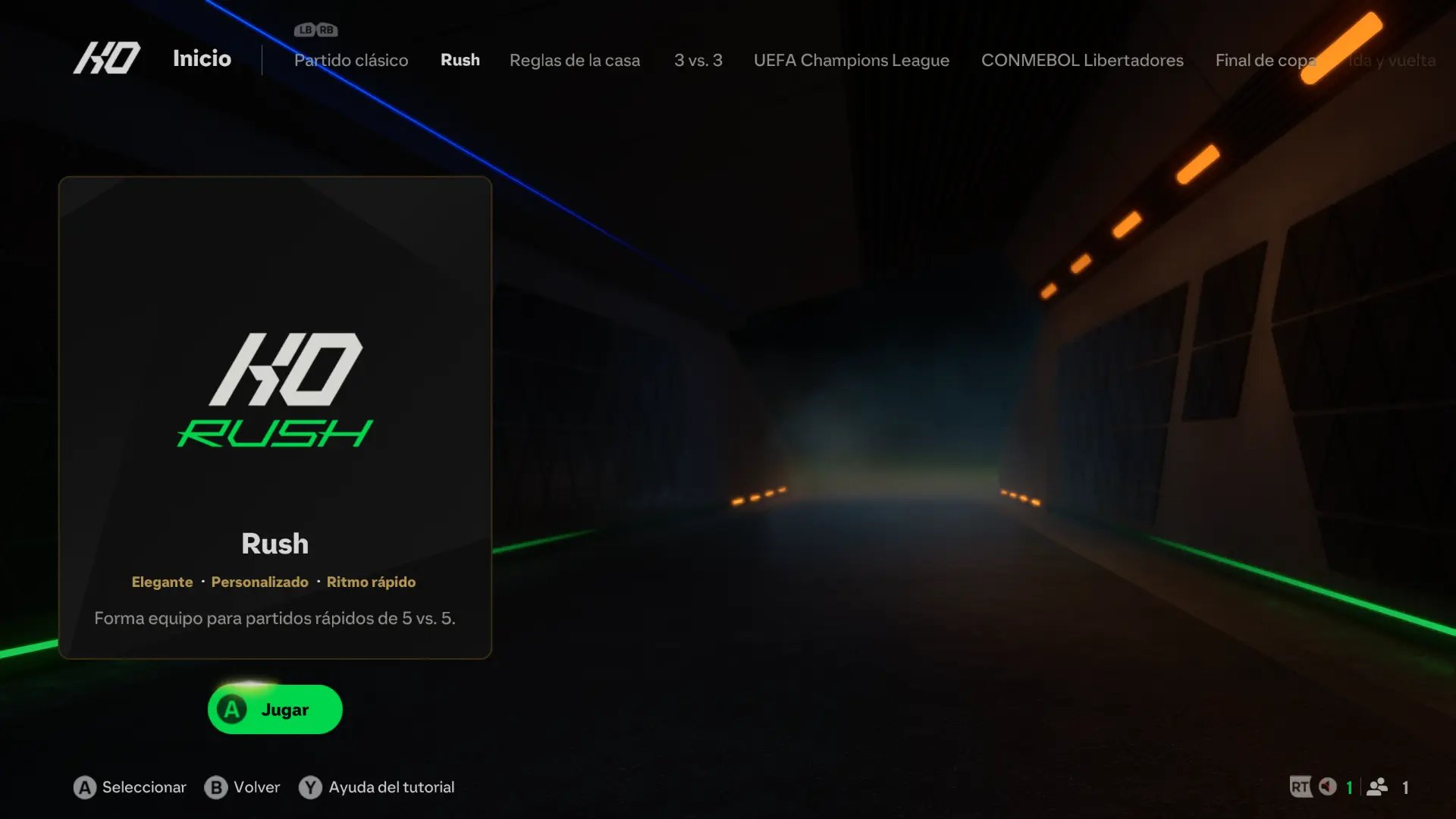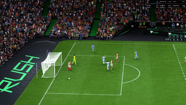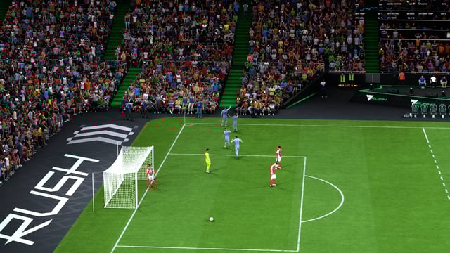 En Rush, los equipos están compuestos por cuatro jugadores de campo controlados por usuarios y un portero manejado por la IA. Esta configuración garantiza partidos emocionantes y llenos de acción, con un enfoque en la colaboración entre jugadores humanos y la integración inteligente de la IA. El campo de juego, más compacto que el tradicional, fomenta un juego más intenso y participativo.