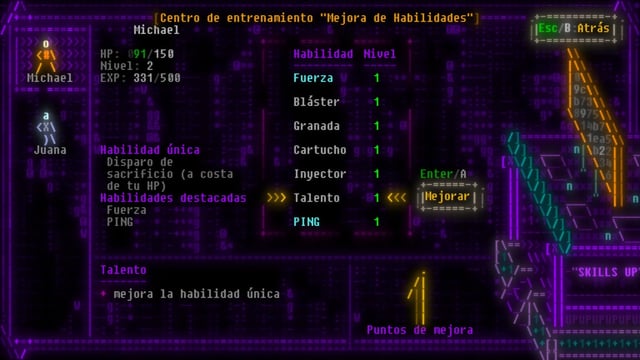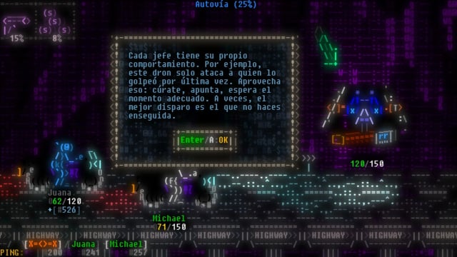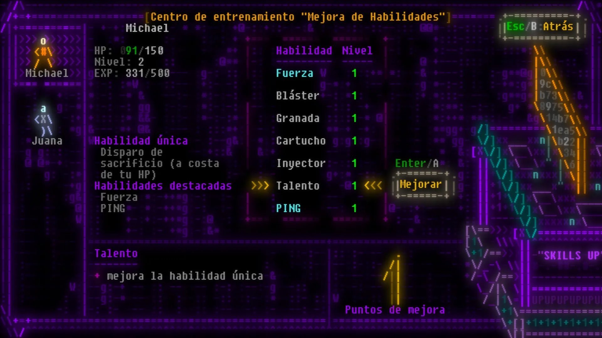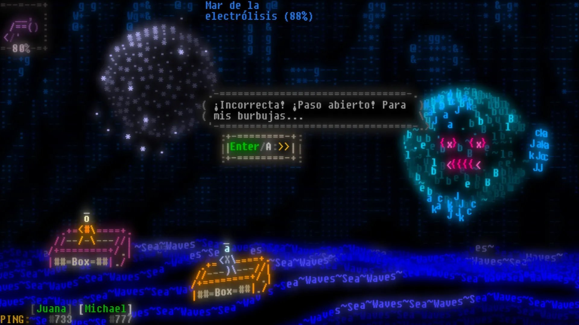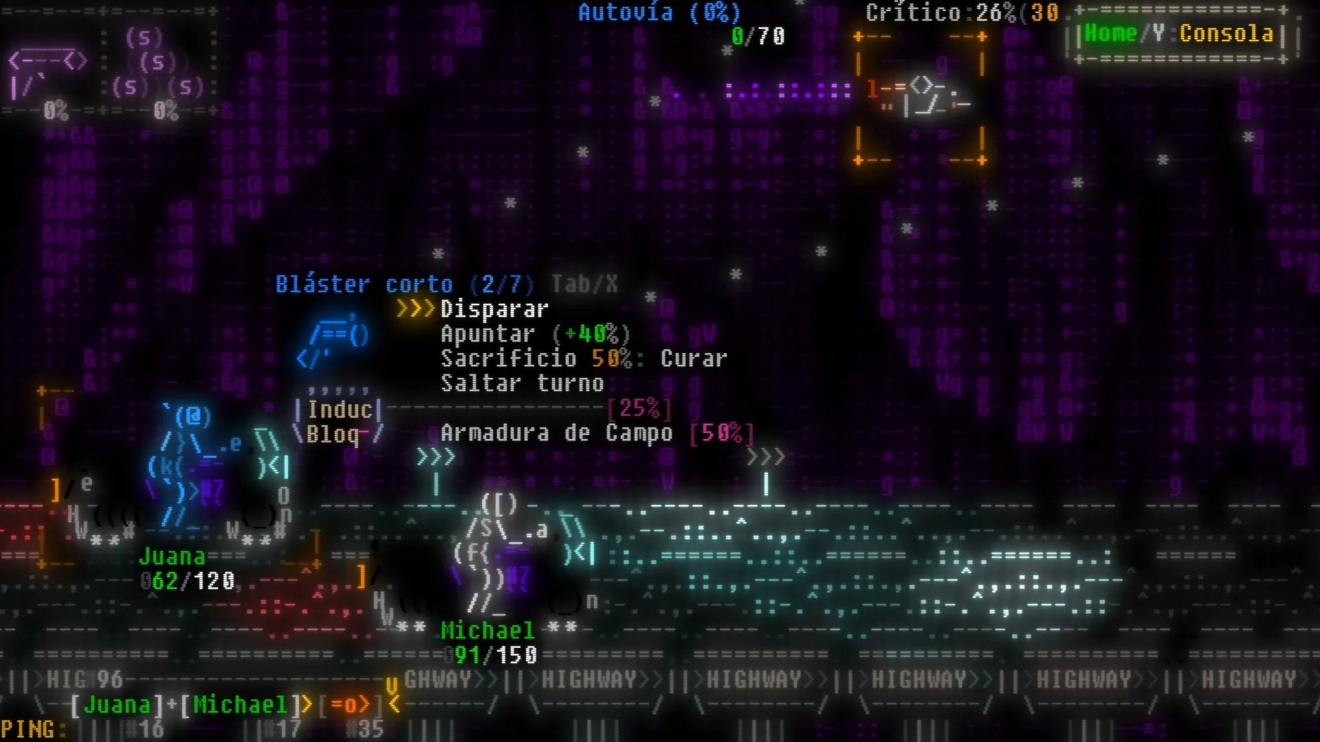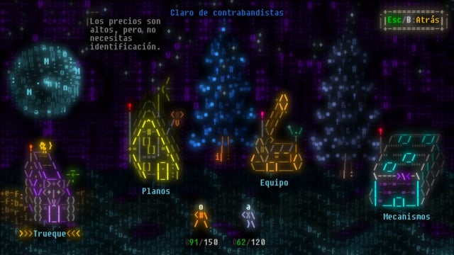 - Estilo visual único basado en arte ASCII con estética retro y neón.