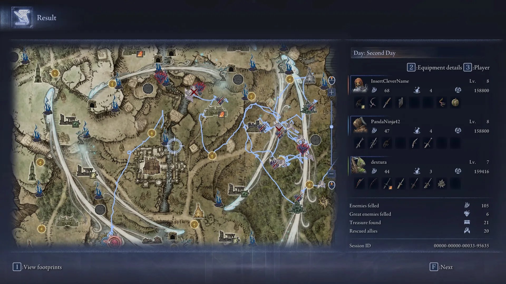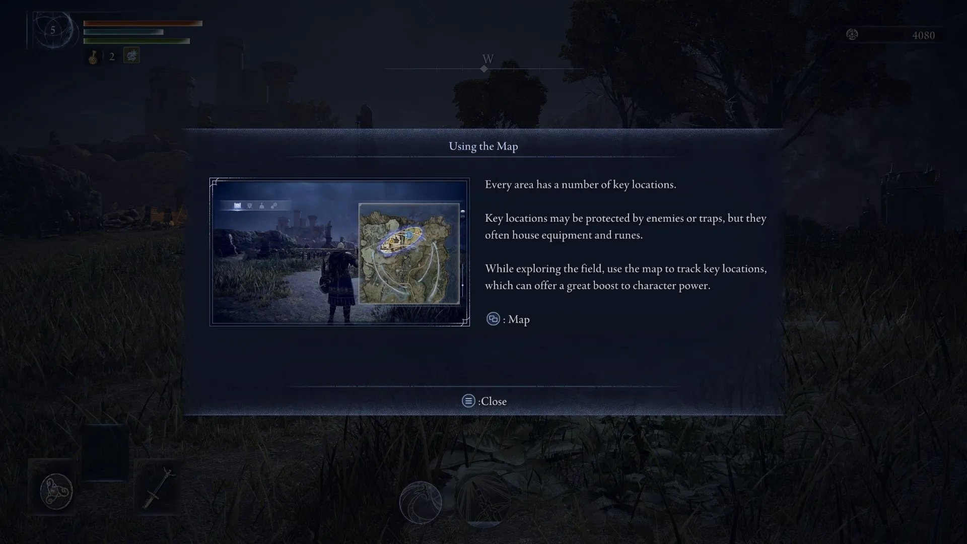 Hablando del mapa, este es de forma circular, y cuenta con varias locaciones notables para visitar en nuestra partida y que cambian de locación y contenido en cada intento. Tenemos pueblos, fortalezas, santuarios y otros sitios reconocidos de Elden Ring donde podremos conseguir equipamientos y consumibles para nuestra partida.