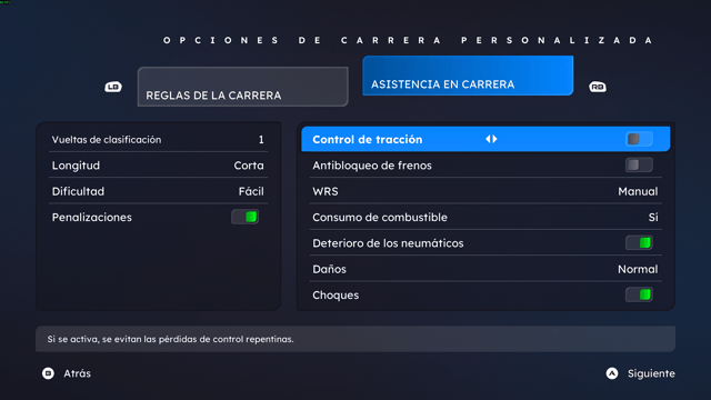 Pese a ello, la experiencia general transmite una sensación de vitalidad en la pista, especialmente cuando se combina con la gestión de rebufos y la adaptación al clima. Aunque en mayor parte siempre esta activa, porque no es 100% realista, no debemos hacer cambios de velocidad o preocuparnos por alguna parte en específico que este dañada.