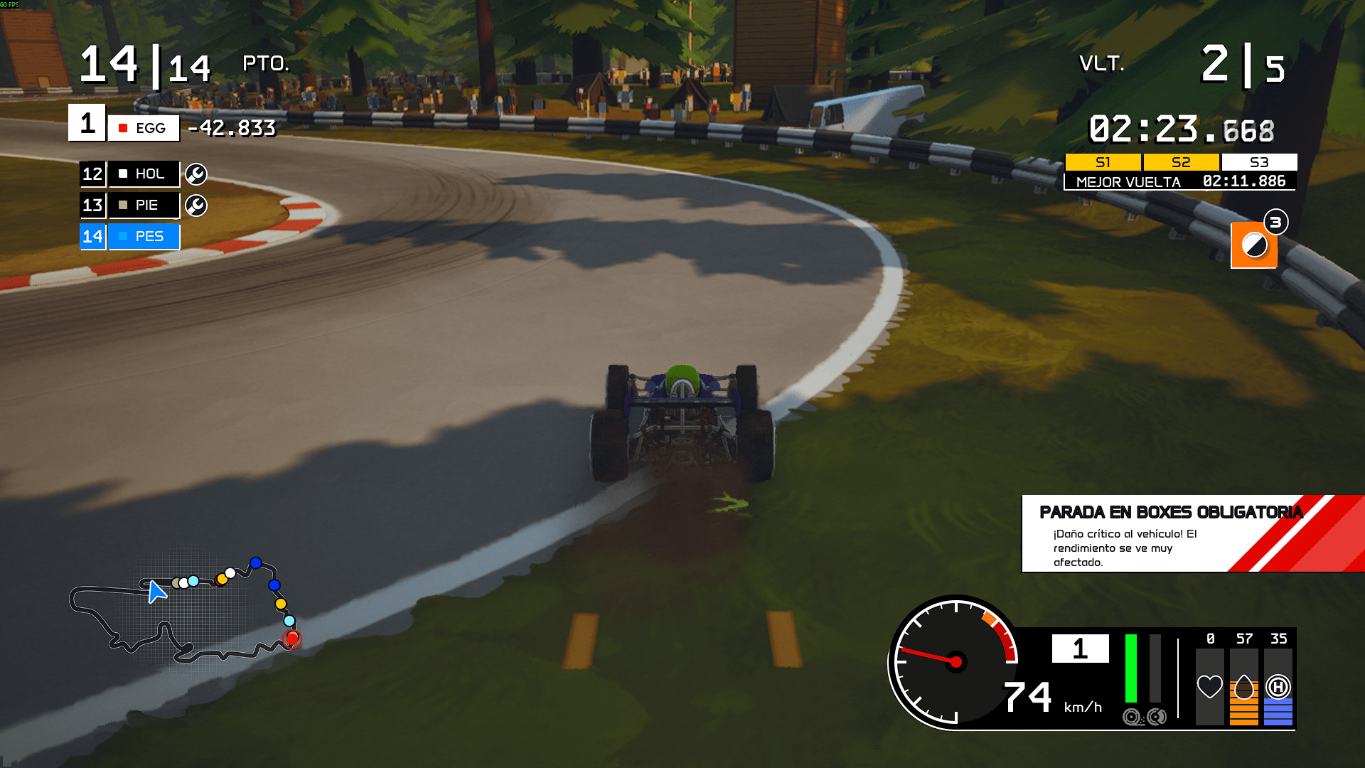 Elementos como el cambio de neumáticos, las paradas en pits con mini-juego incluido para probar los reflejos y el clima dinámico aportan capas de estrategia poco comunes en un título que a primera vista parece un arcade. Aquí reside gran parte de su atractivo: es fácil de aprender, pero recompensa el dominio con carreras tensas y llenas de variables, las cuales se pueden variar en cada carrera o contrarreloj.