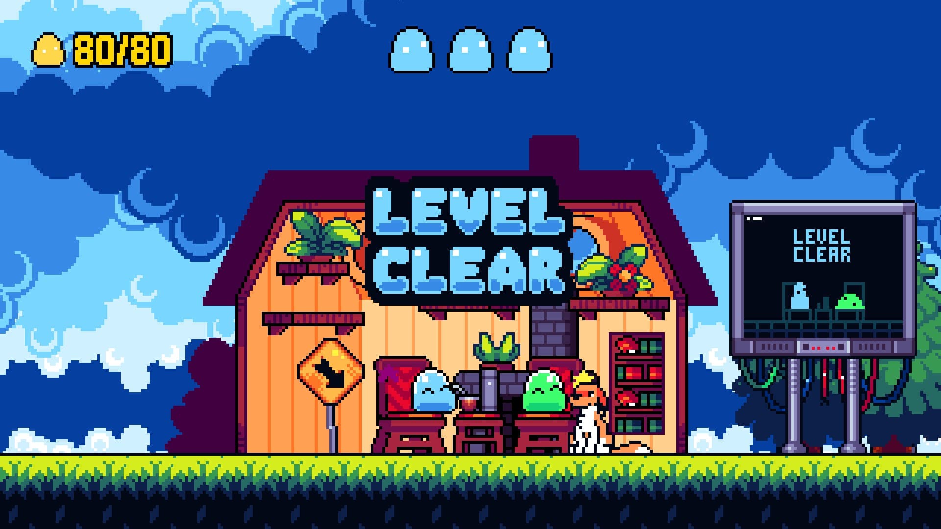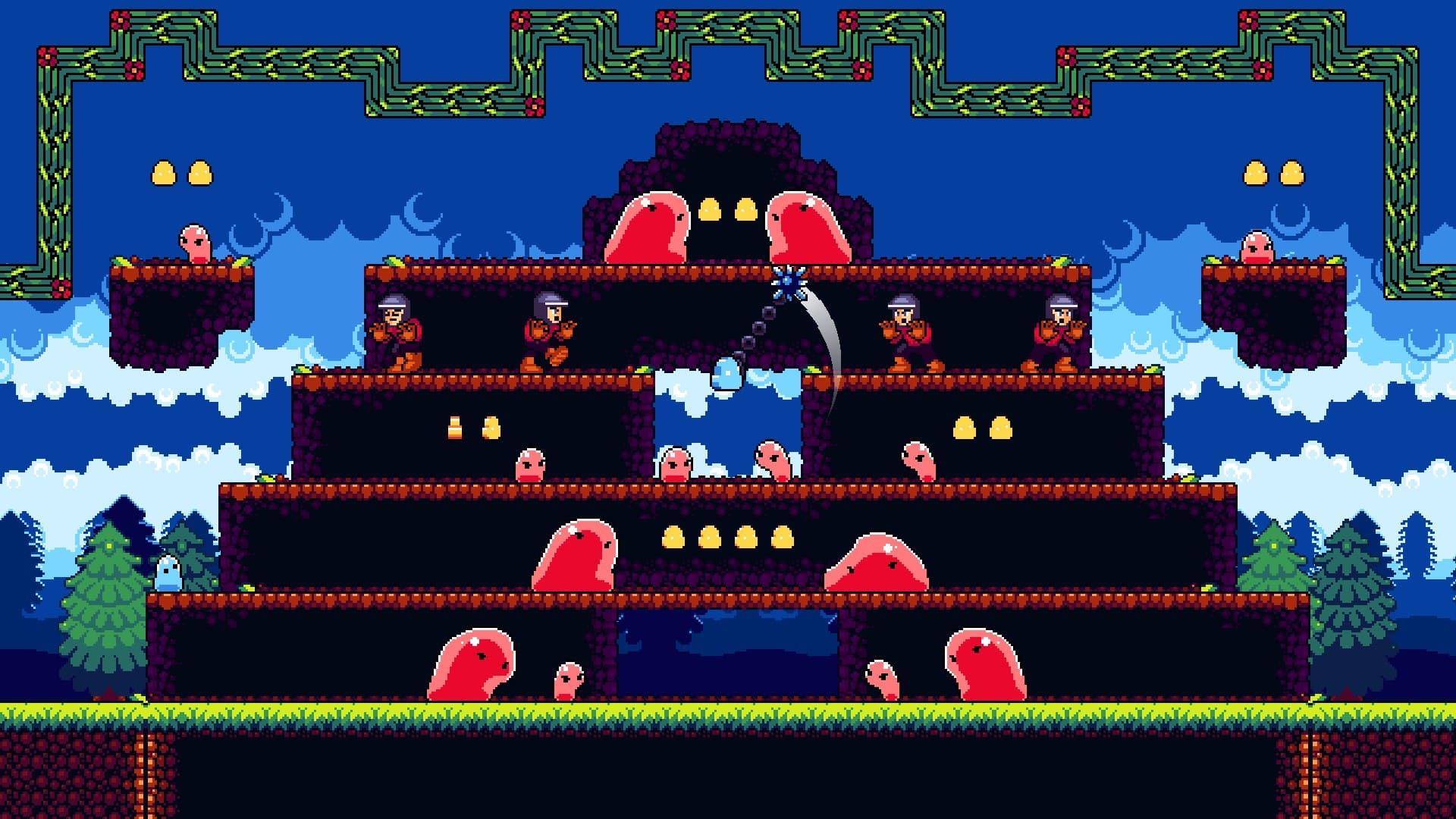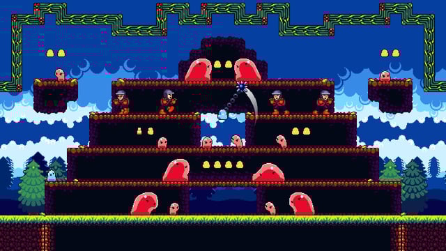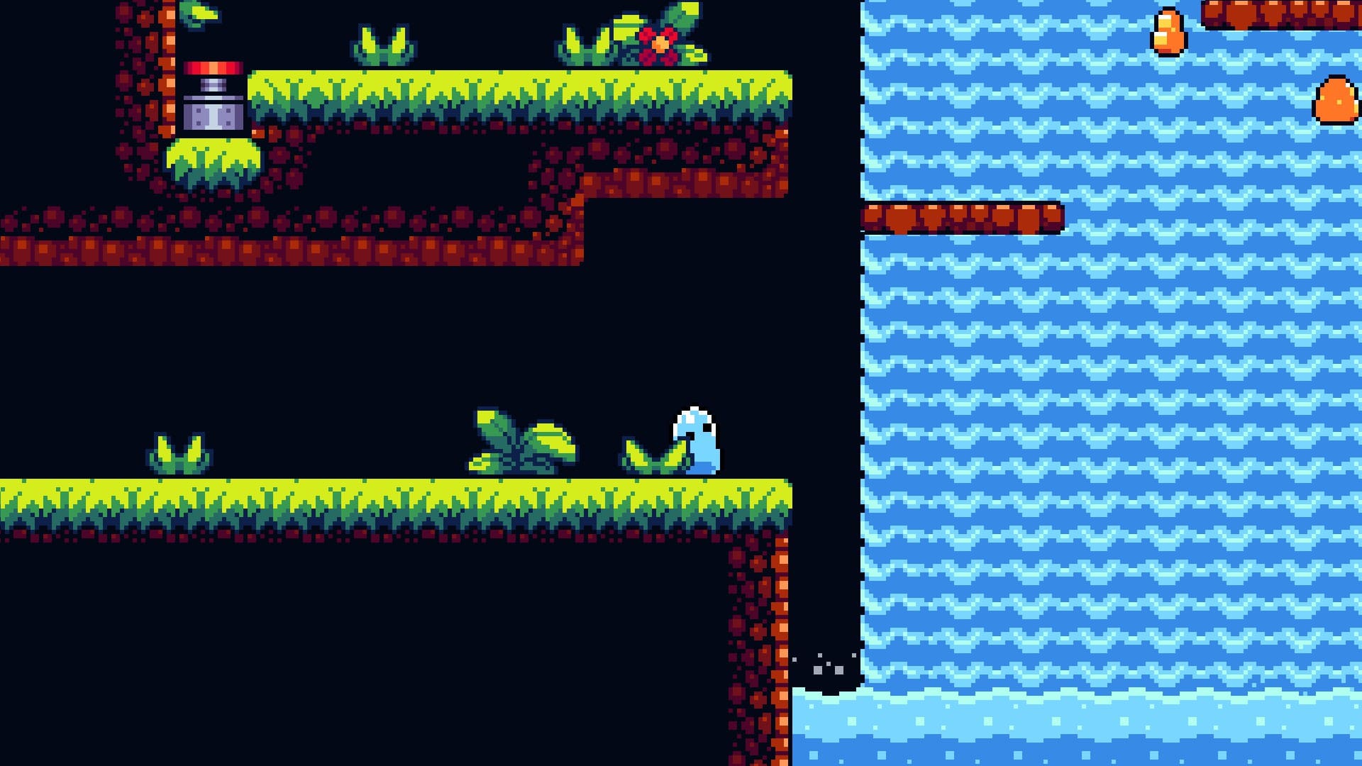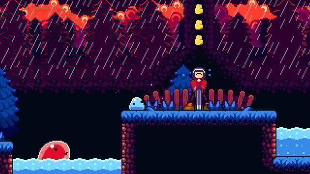 - Dirección artística y animaciones muy logradas: El pixel art destaca por su claridad visual, animaciones fluidas y excelente lectura de pantalla. El peso y elasticidad del slime están perfectamente representados, reforzando la sensación de control.
