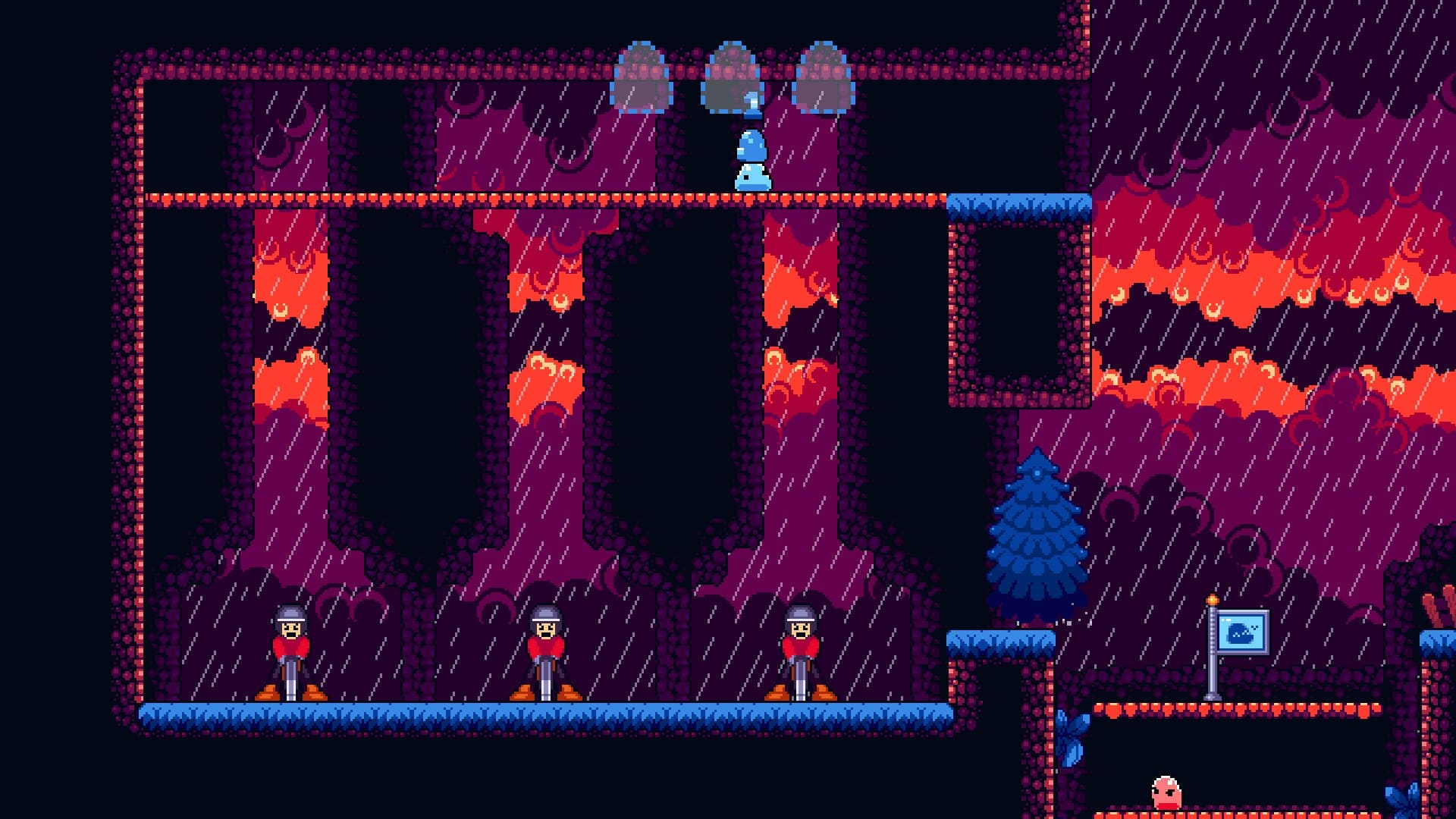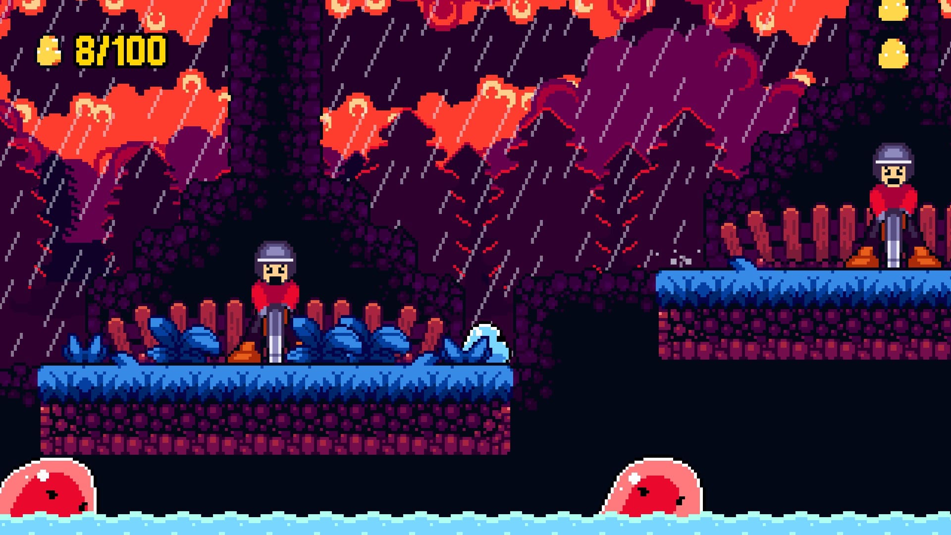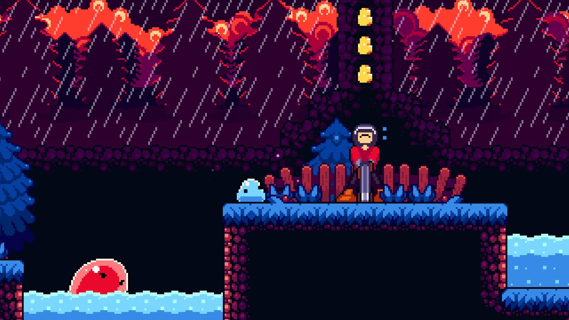 - Dirección artística y animaciones muy logradas: El pixel art destaca por su claridad visual, animaciones fluidas y excelente lectura de pantalla. El peso y elasticidad del slime están perfectamente representados, reforzando la sensación de control.
