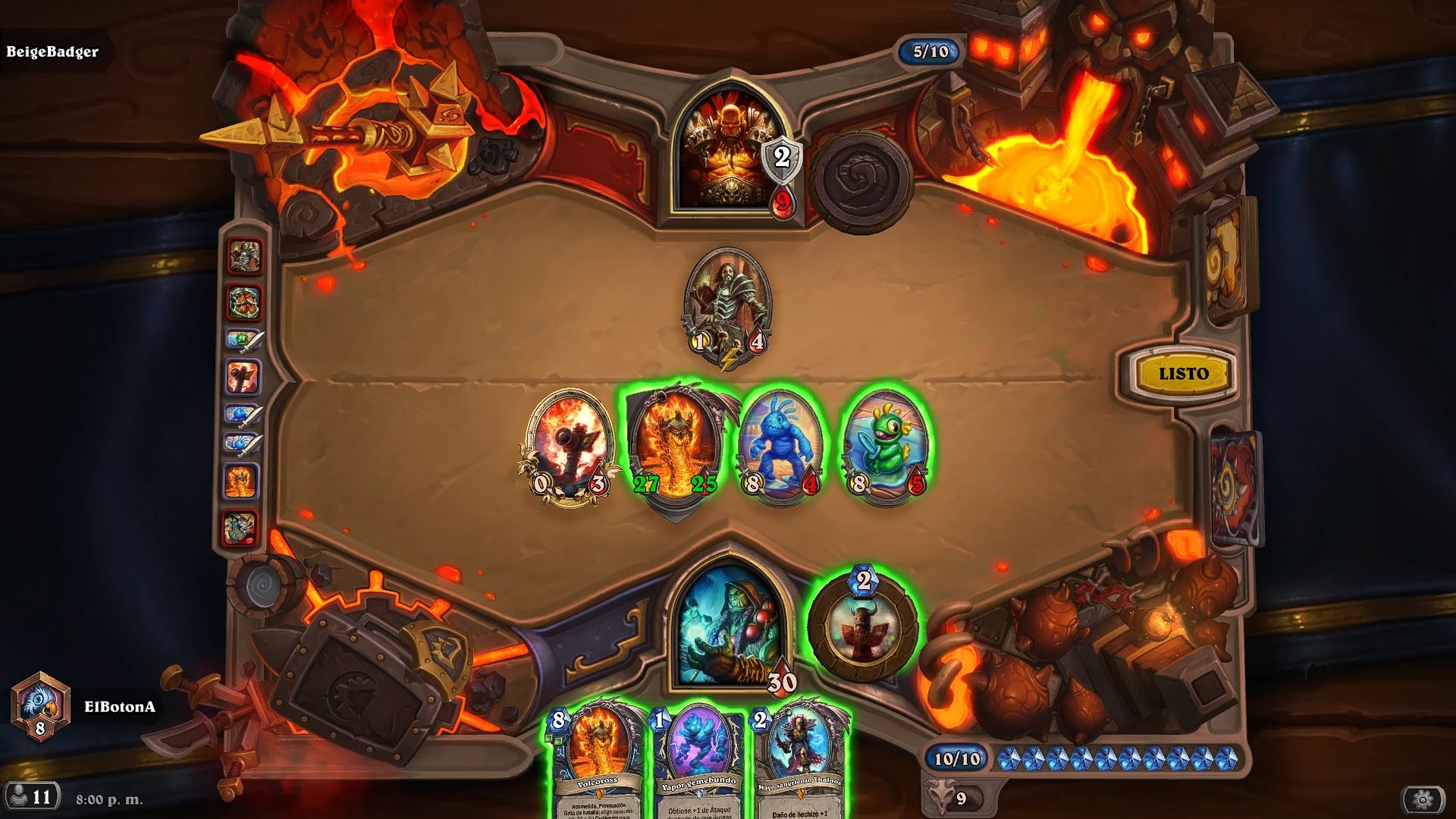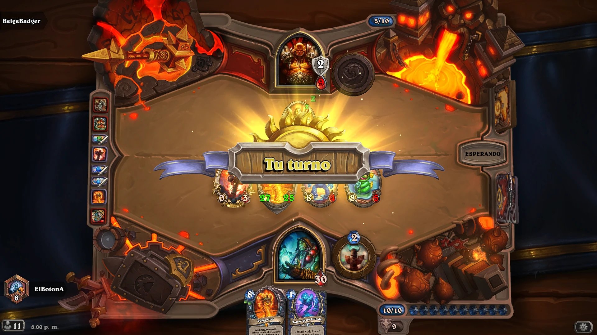 Dive the Golakka Depths del Paladín domina el meta con un 52% de victorias, generando Murlocs infinitamente potentes que abruman a oponentes aggro y de control. Su simplicidad y falta de coste adicional la convierten en una fuerza imparable desde el lanzamiento. Loh, the Living Legend, para el Druida, redefine los mazos Ramp, invocando esbirros masivos tempranamente y terminando partidas con rapidez.