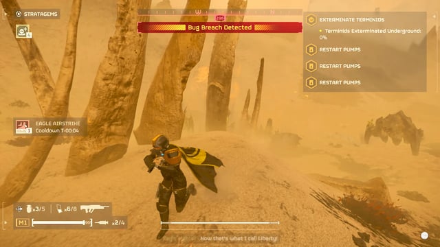 - Variedad de misiones y enemigos: Las misiones en planetas generados proceduralmente, desde junglas hasta desiertos, y enemigos como Terminids, Automatons e Illuminate, aseguran diversidad en cada partida.