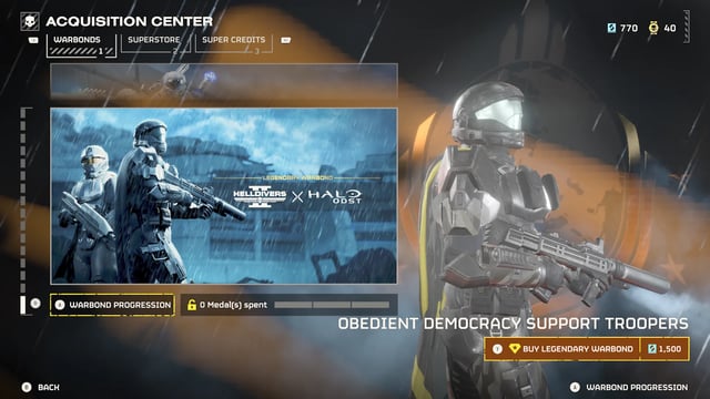 Los Warbonds, conjuntos de equipo desbloqueables, son permanentes y se compran con Medallas ganadas en misiones. Los Warbonds premium ofrecen armas, armaduras y cosméticos, pero requieren Super Créditos, obtenibles en juego o con dinero real. El Warbond Halo ODST, con el rifle MA5C, es atractivo para fans, pero su contenido limitado decepciona. Los novatos deben priorizar el Warbond estándar para acumular créditos.