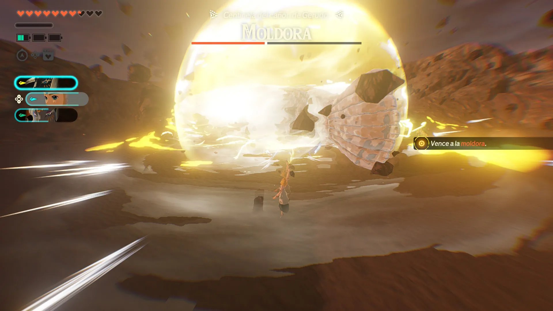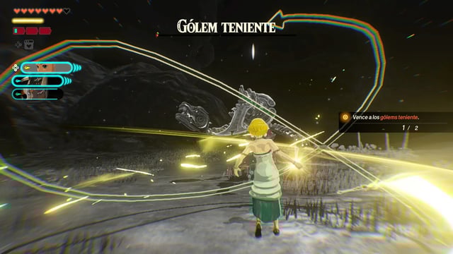 Consejo de El Botón A: Combina el Cohete Zonai con la Habilidad Única de Zelda para dashes aéreos que exponen puntos débiles de jefes rápidamente, maximizando Golpes Sincronizados con Rauru en hordas densas.