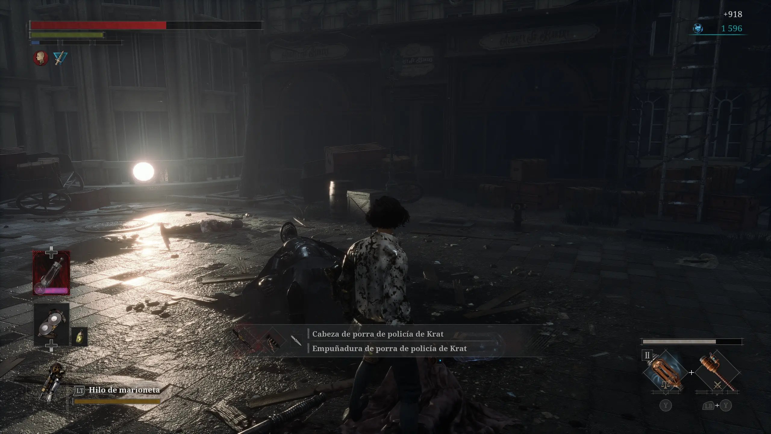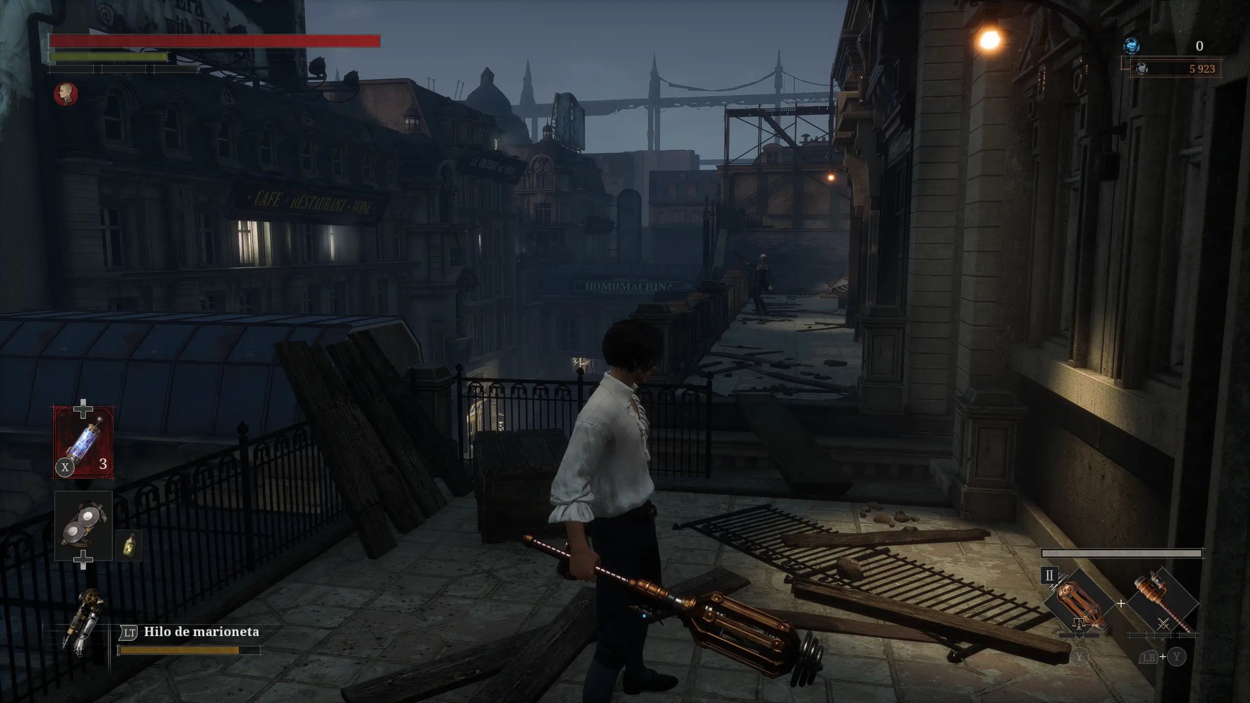 El sistema de juego de Lies of P es similar al de los juegos soulslike convencionales. Sin embargo, Lies of P combina lo familiar con un peso audiovisual: los engranajes de Pinocho rechinan cuando ataca y sus golpes aterrizan con chispas de fuego, dando un impacto satisfactorio al acero impulsado por pistones detrás de sus movimientos de arma.