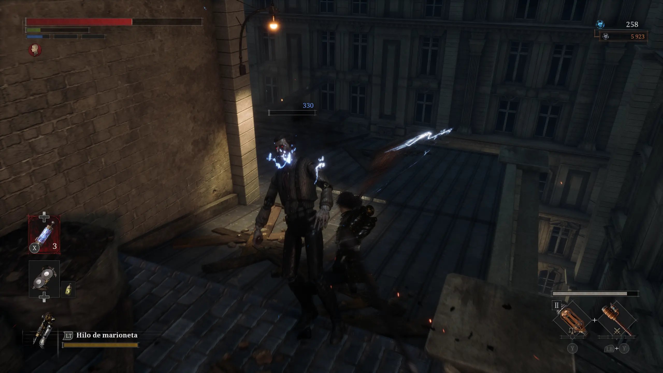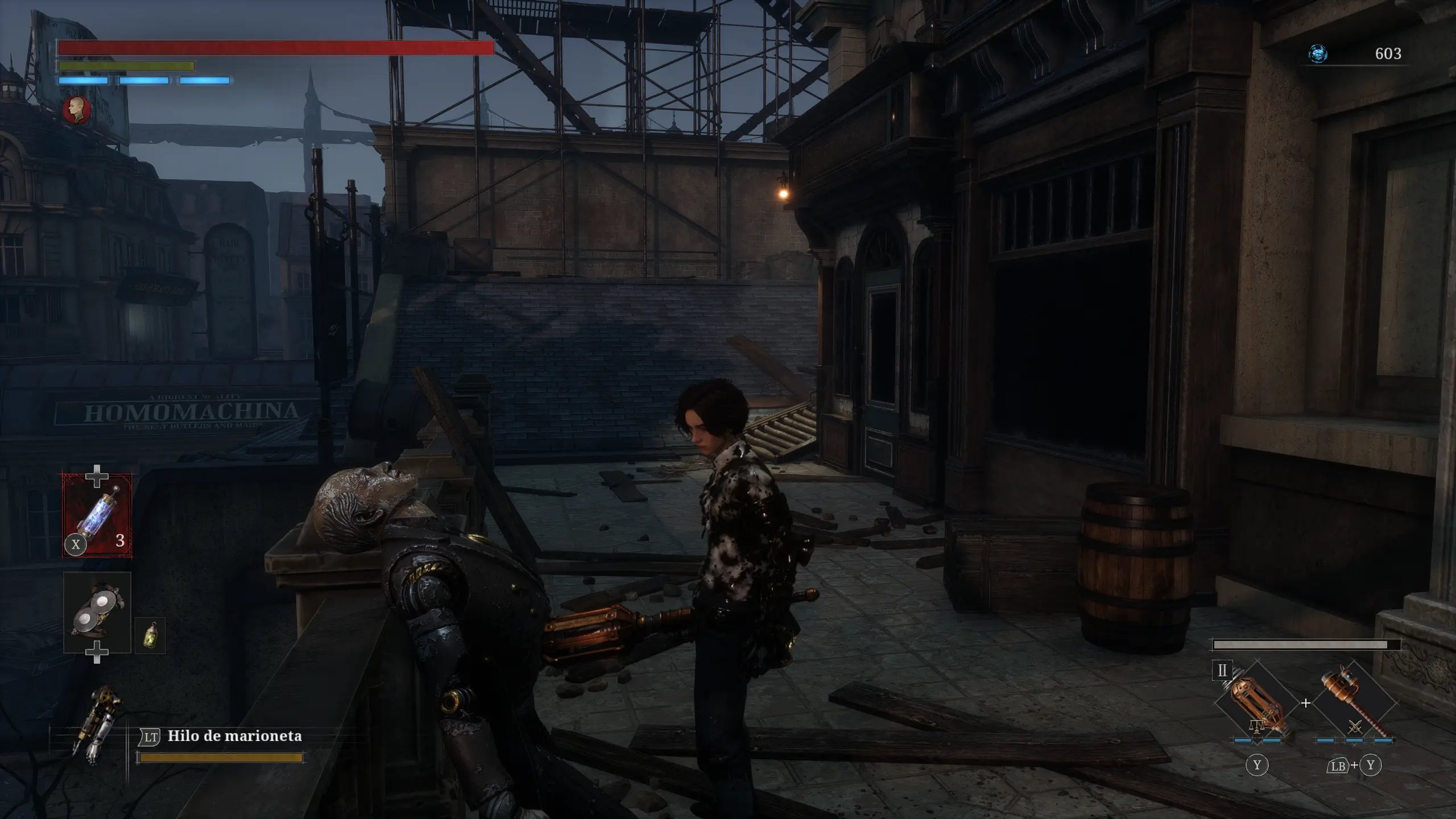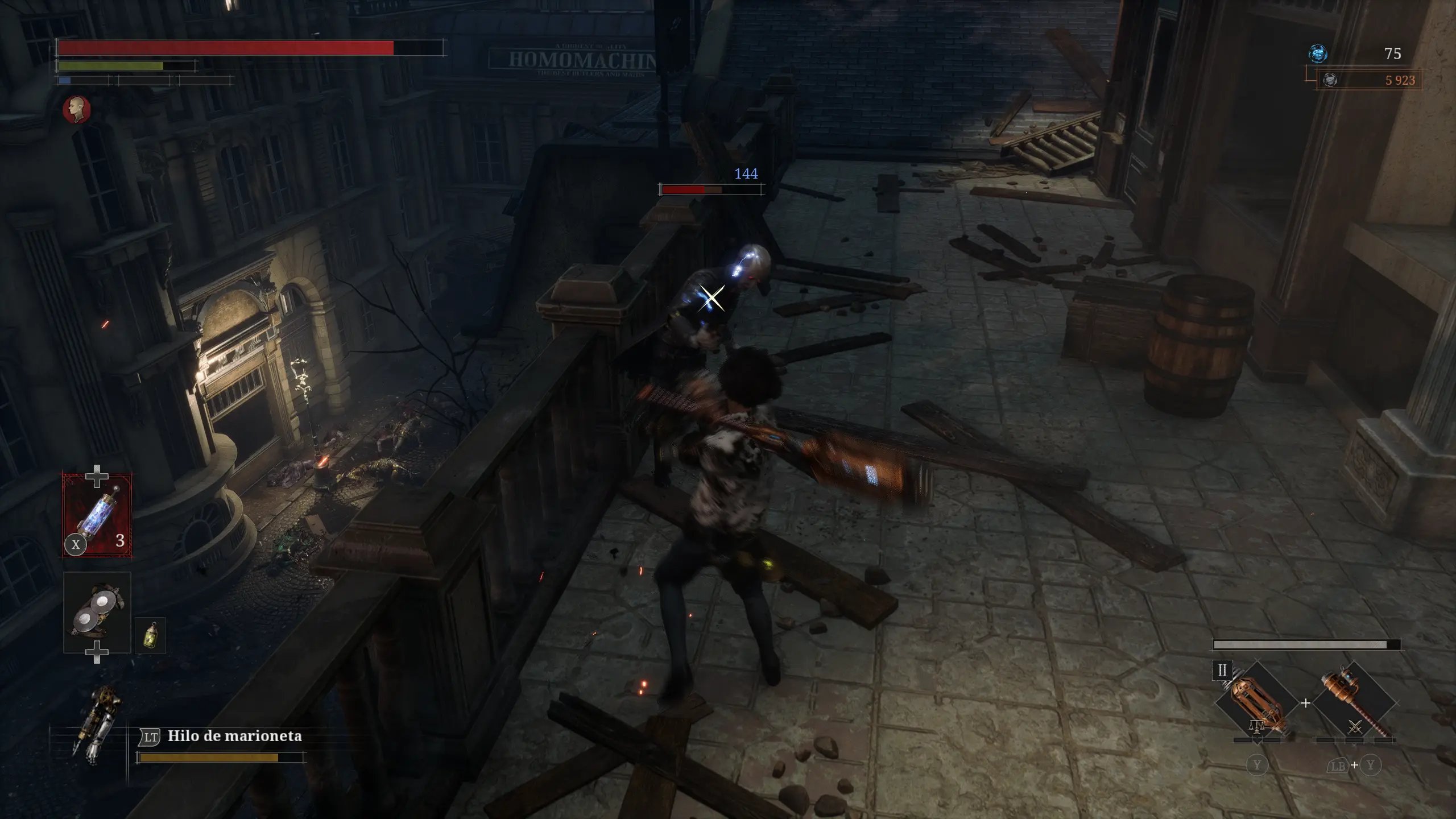 El combate en Lies of P se inspira claramente en Bloodborne, con un par de ajustes menores. No puedes restaurar la salud perdida por ataques directos golpeando a tus enemigos como en Bloodborne, pero se te da la habilidad de bloquear parcialmente parte de ese daño entrante y luego contraatacar para restaurar el daño que absorbiste.