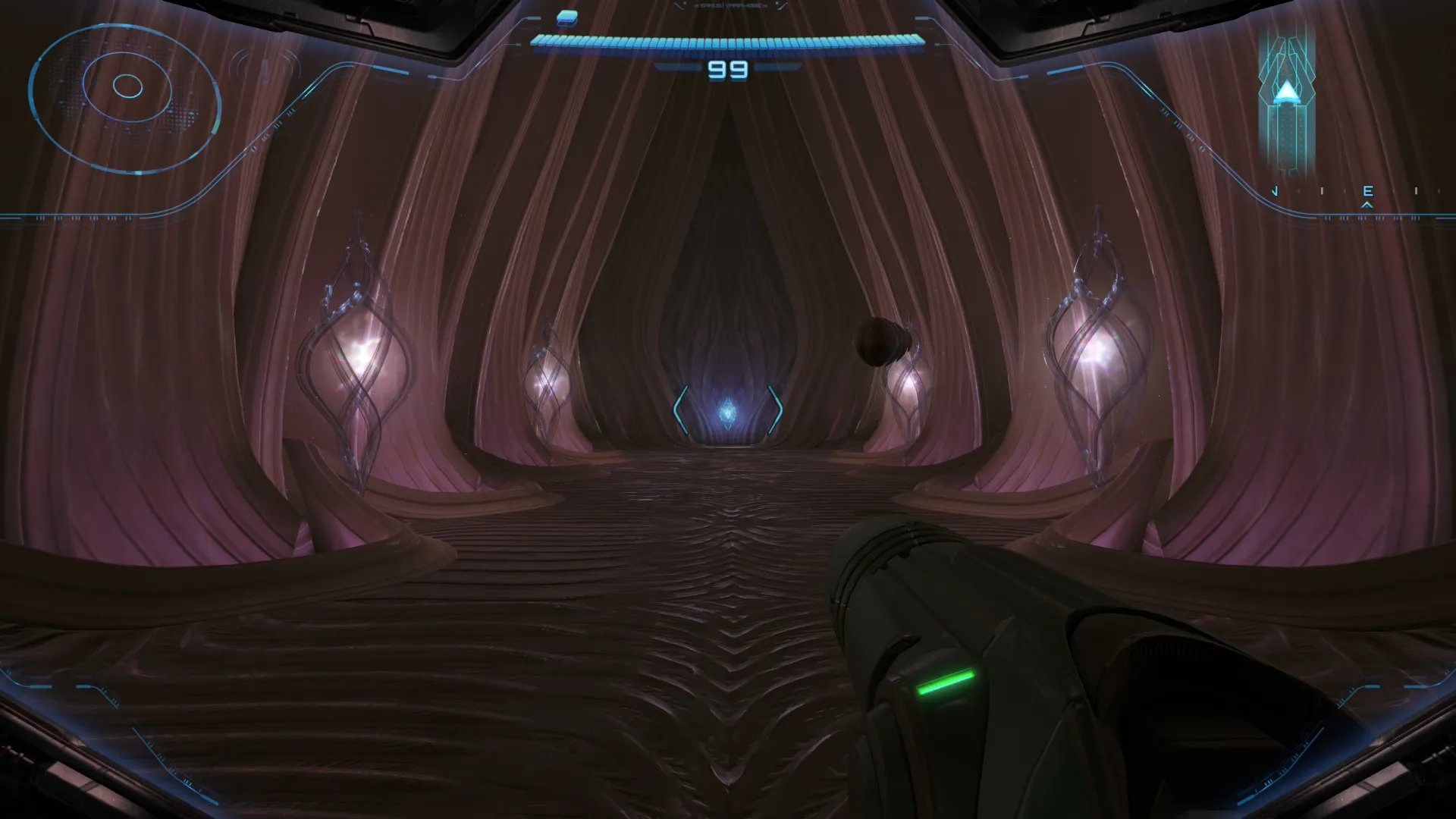 El diseño fomenta la soledad en gran parte del tiempo de juego, con segmentos sin señal de radio que potencian la inmersión de terror ciencia ficción, aunque el núcleo desértico genera momentos de tedio por su extensión vacía y recolección repetitiva de cristales de energía verde. La progresión episódica evoca a Super Metroid, priorizando atmósfera y secuencias únicas sobre interconexiones complejas, con una duración aproximada de 15 horas para la historia principal, extensible a 20-30 horas para el 100% con tanques de energía y expansiones de misiles.