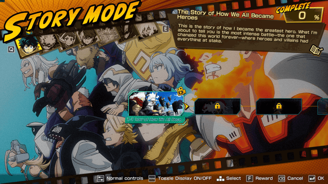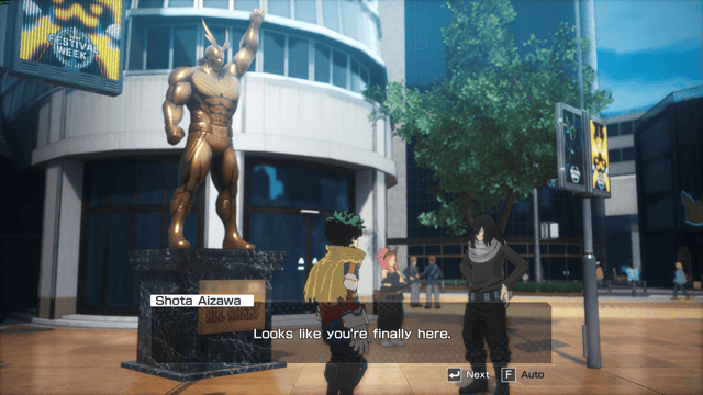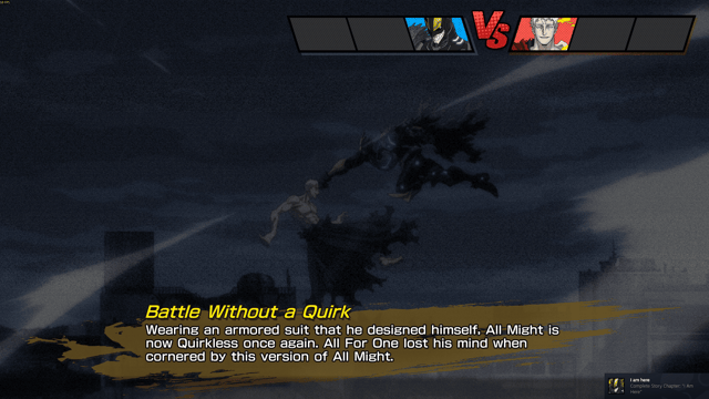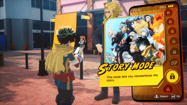 El modo historia es, sin discusión, el eje central de All’s Justice. La campaña se concentra exclusivamente en la Batalla Final entre la liga de villanos y la UA, presentando el conflicto desde múltiples frentes (como se veio en el manga o el anime) y permitiendo al jugador controlar tanto a héroes como a villanos. Esta estructura episódica da espacio no solo a protagonistas como Deku, Bakugo o All Might, sino también a personajes secundarios que rara vez reciben protagonismo jugable.