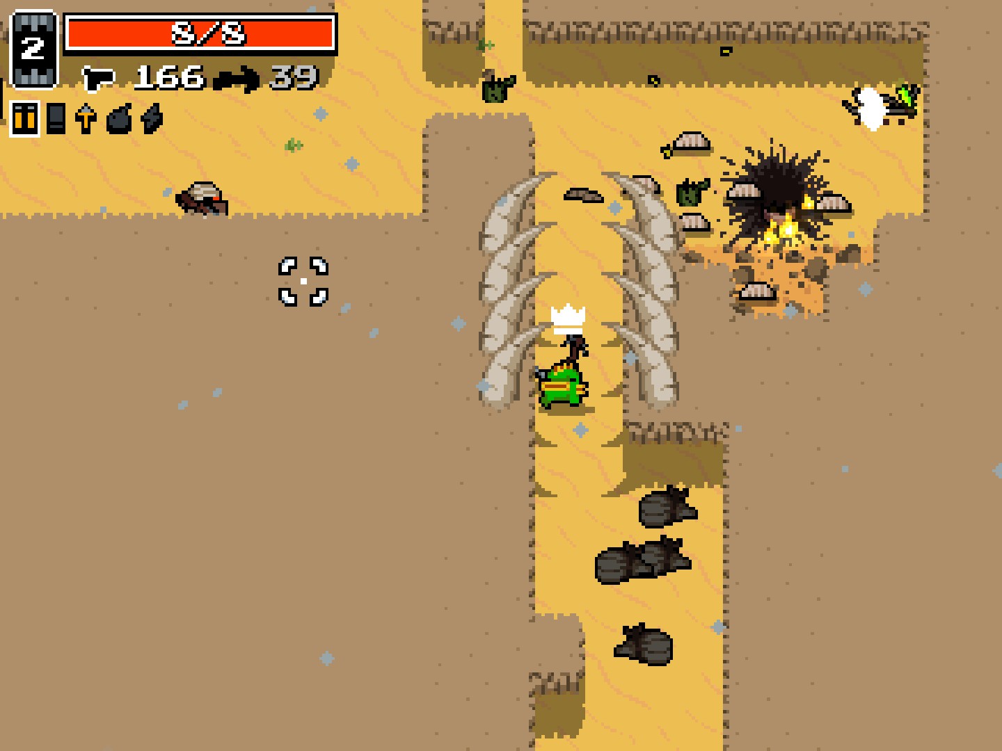 La dificultad es uno de los pilares del juego y también su principal barrera de entrada. Nuclear Throne no perdona errores: la pantalla se llena rápidamente de balas, los jefes de los escenarios actúan como auténticas esponjas de daño y cualquier descuido puede acabar con una partida que parecía bien encaminada. Sin embargo, la sensación de injusticia es mínima. Cada muerte suele ser atribuible a una mala decisión, una lectura errónea del escenario o un exceso de confianza. Incluso los momentos más frustrantes alimentan ese irresistible “una partida más” que define a los grandes roguelikes.