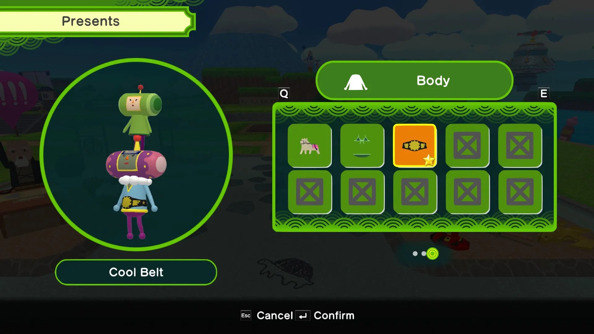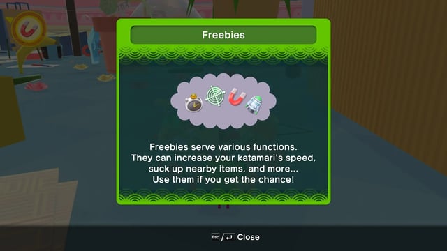 Una adición que trajeron a este título es la inclusión de equipamientos para completar nuestras tareas de manera más fácil. Tenemos cohetes que nos permitirán movernos más rápido por los niveles; un radar para localizar objetos escondidos como coronas o primos del Príncipe; imanes para atraer todos los objetos cercanos que podamos pegar a nuestro Katamari; y finalmente un reloj, que congelará el tiempo, lo que te permite atrapar con tu Katamari las cosas que se desplacen muy rápido o si necesitas tiempo extra en tu misión.