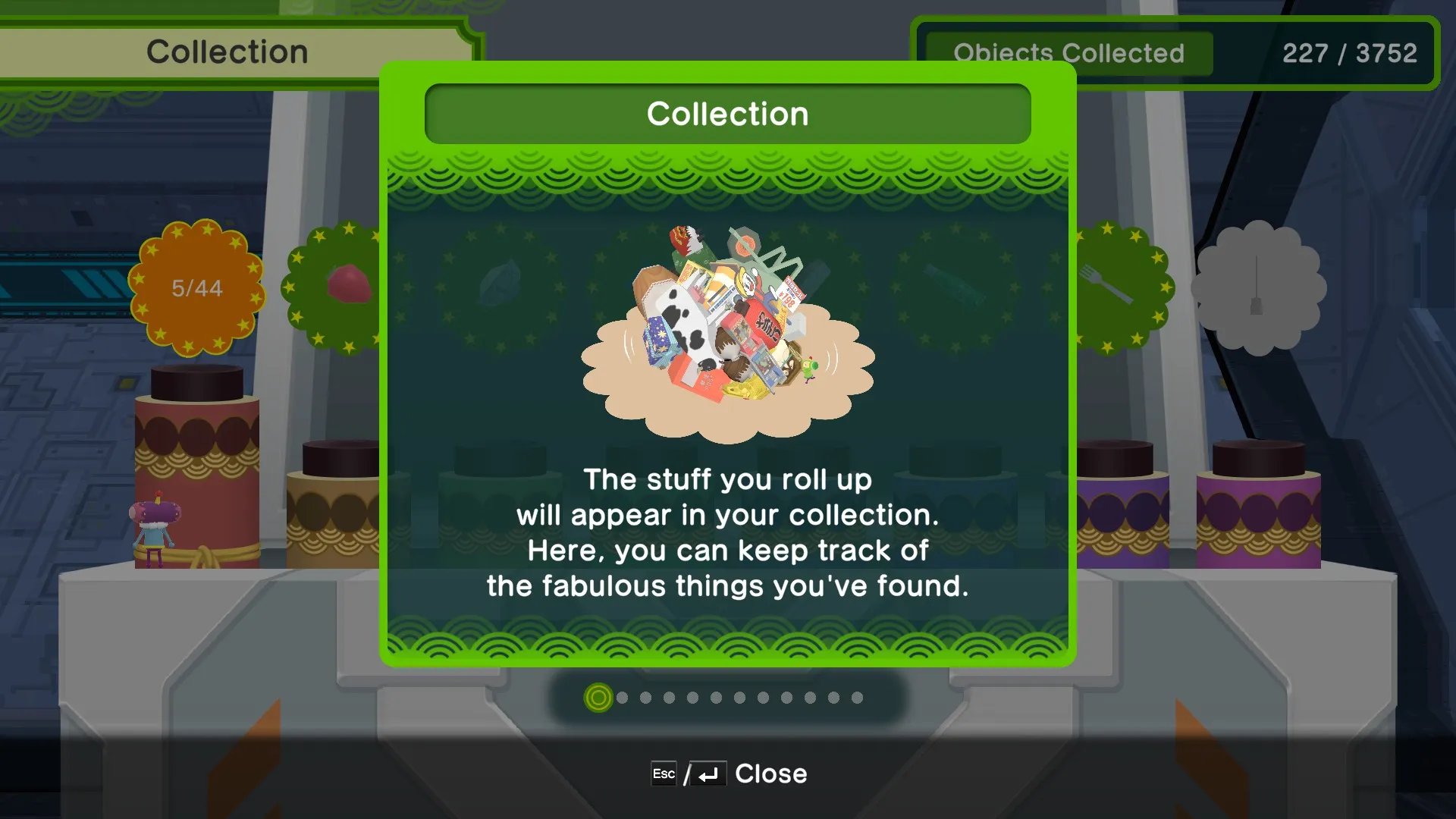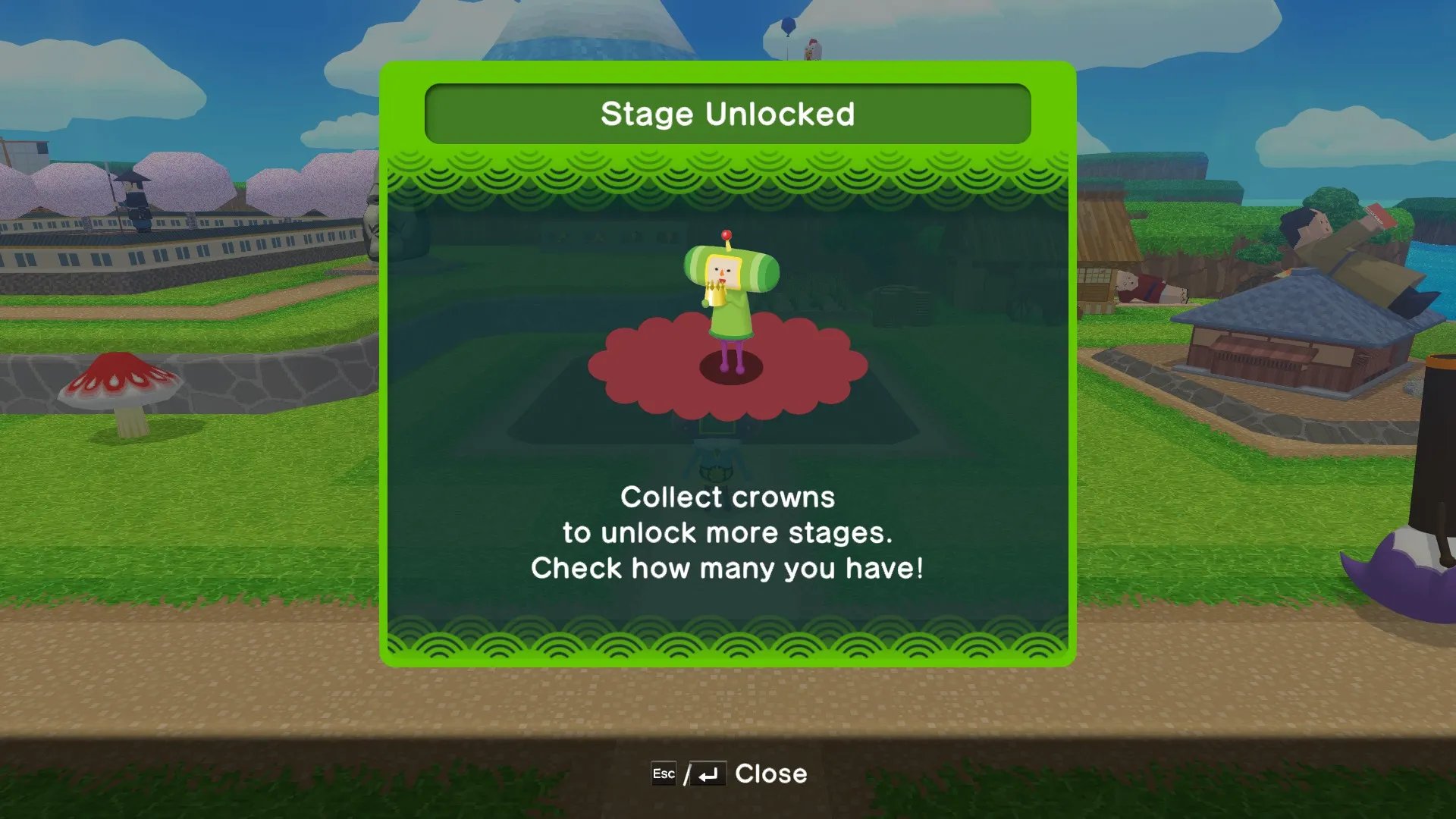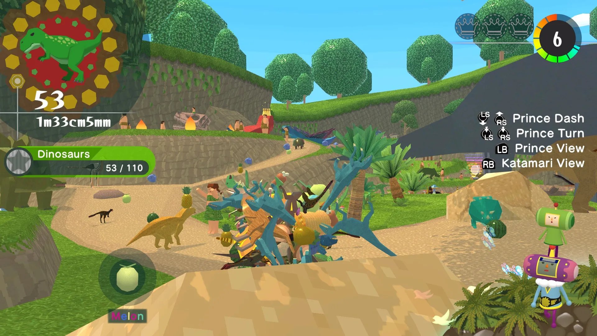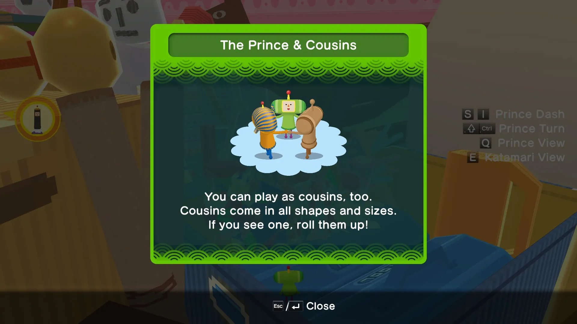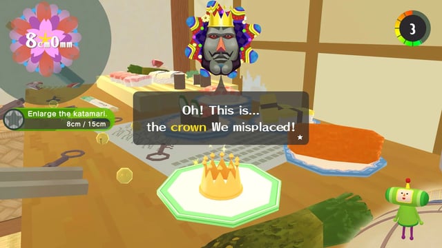 Al completar cada nivel, crearemos una estrella o un planeta basados en la locación. Conseguiremos monedas que sirven para comprar objetos estéticos, y las coronas obtenidas en el camino también servirán para abrir nuevos niveles y épocas. En cada nivel estará escondido un primo de El Príncipe, y al capturarlo en nuestro Katamari, lo desbloquearemos y podremos jugar con él. Finalmente hay niveles multijugador, en donde competiremos con la computadora o contra nuestros amigos de manera local, recolectando objetos en nuestro Katamari y depositándolos para obtener puntos.