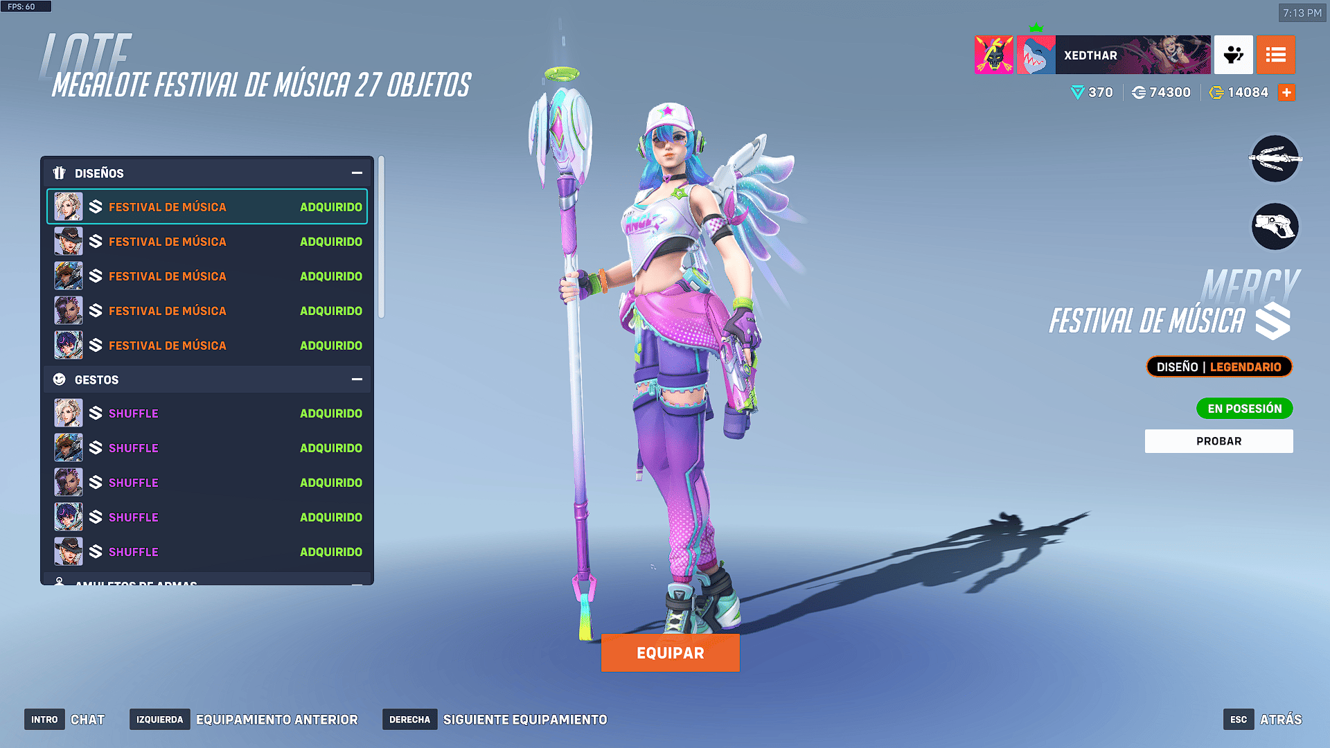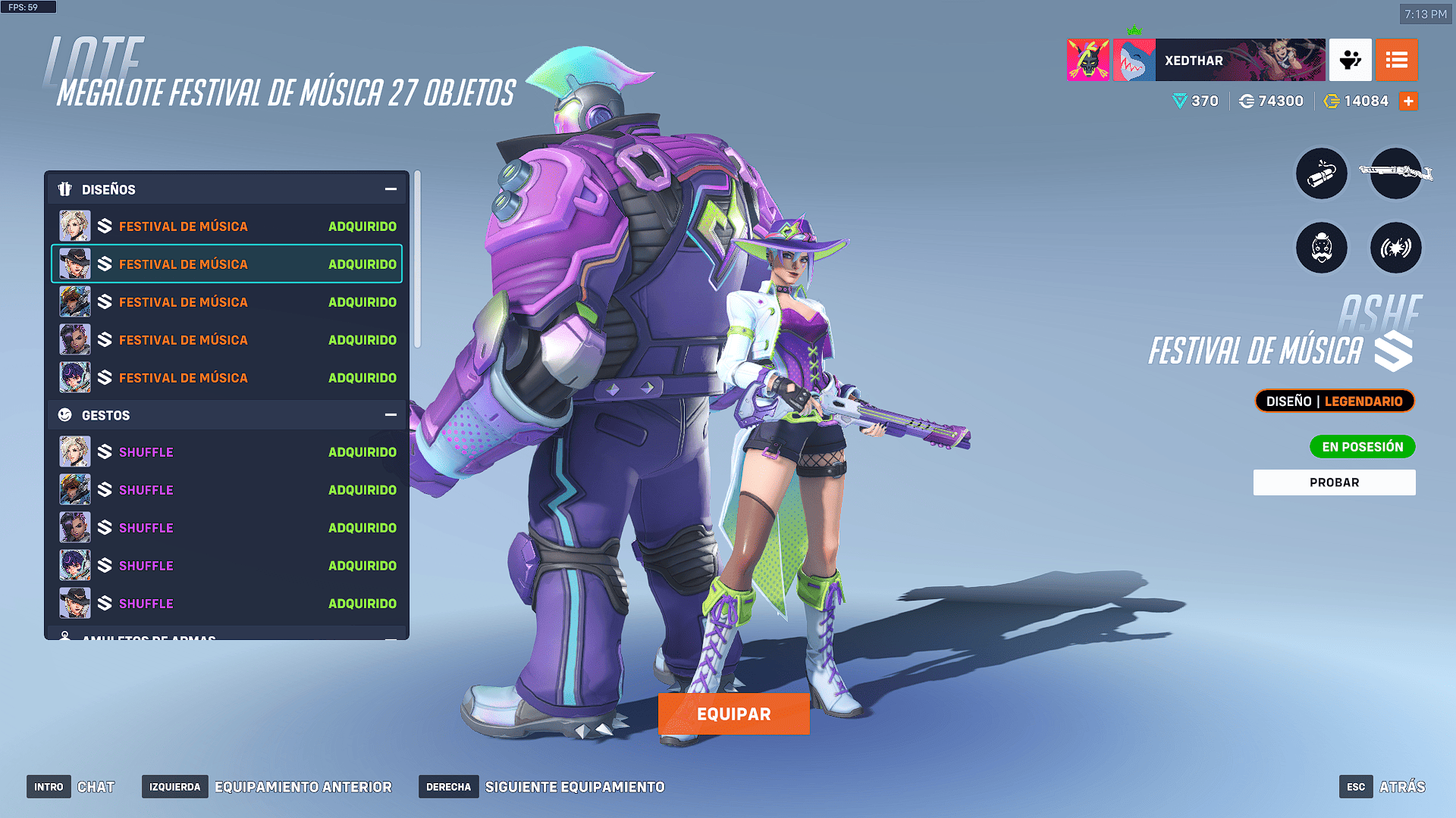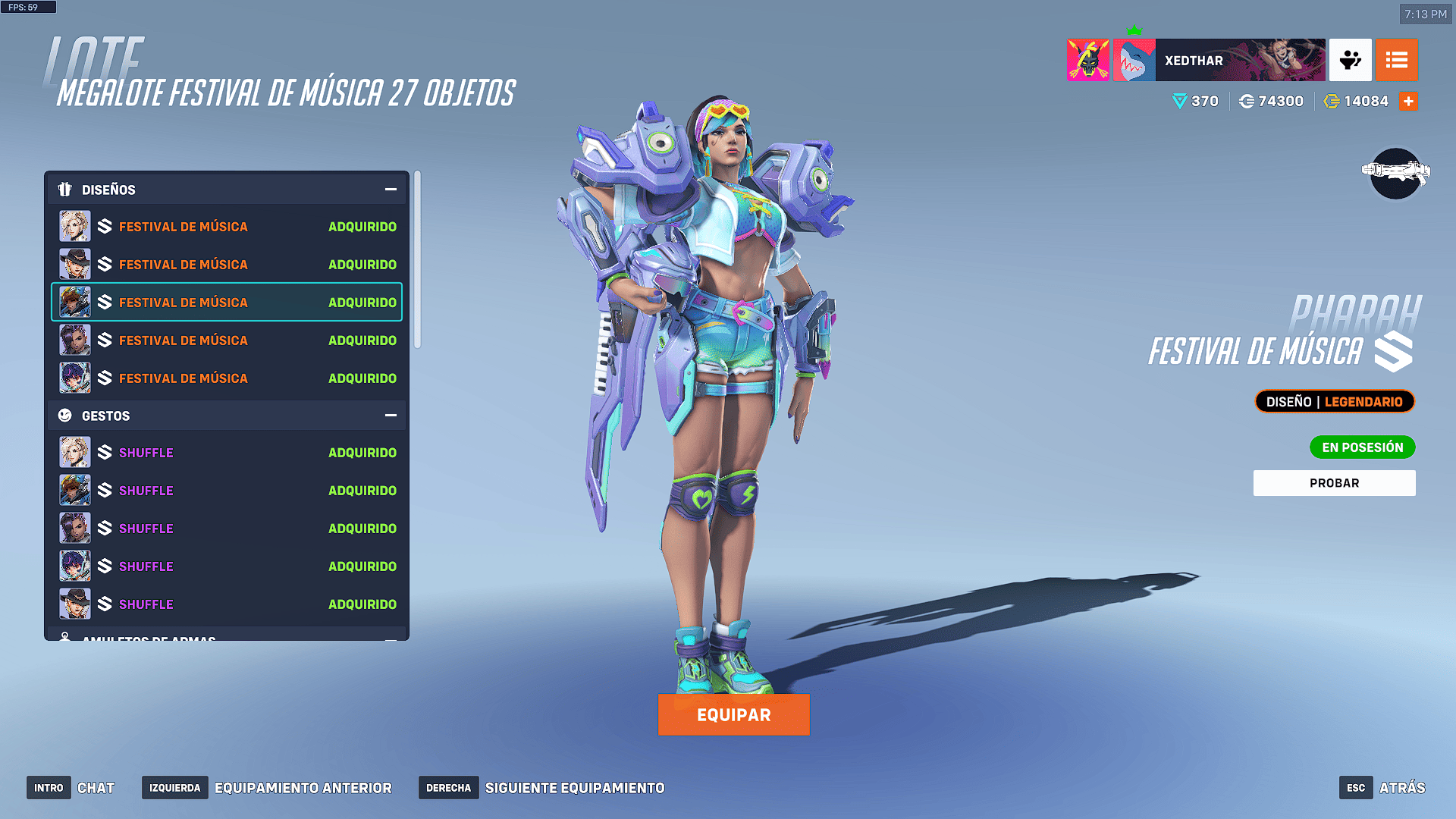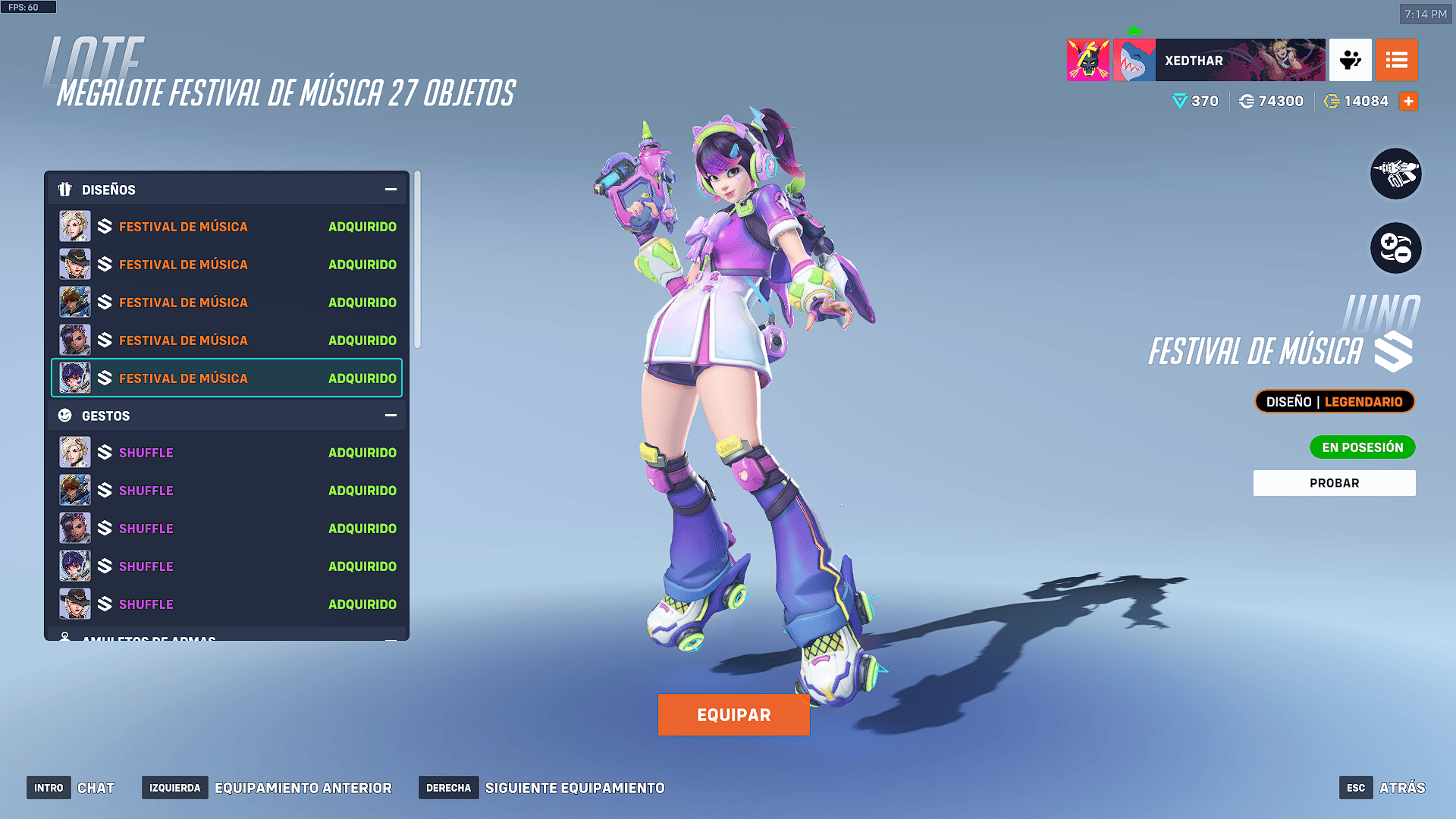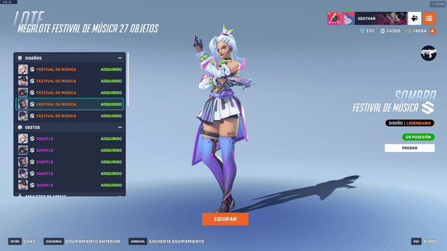 - Tarjetas de presentación (5): entre ellas destacan “DJ Pachi”, “Ecualizador neón” y variaciones de Ashe, Juno y Sombra en modo festival.