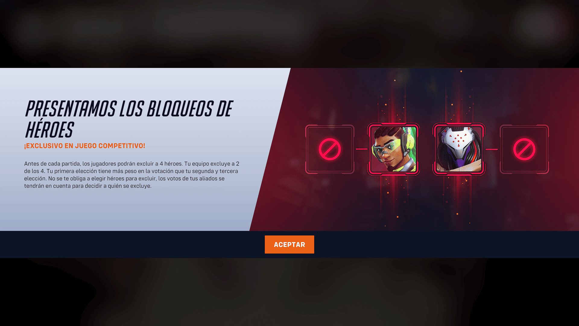 Por primera vez, Overwatch 2 introduce bloqueos de héroes en el juego competitivo. Antes de cada partida, ambos equipos votan para eliminar hasta cuatro héroes del juego, lo que añade una capa estratégica al enfrentamiento y fomenta la coordinación del equipo.