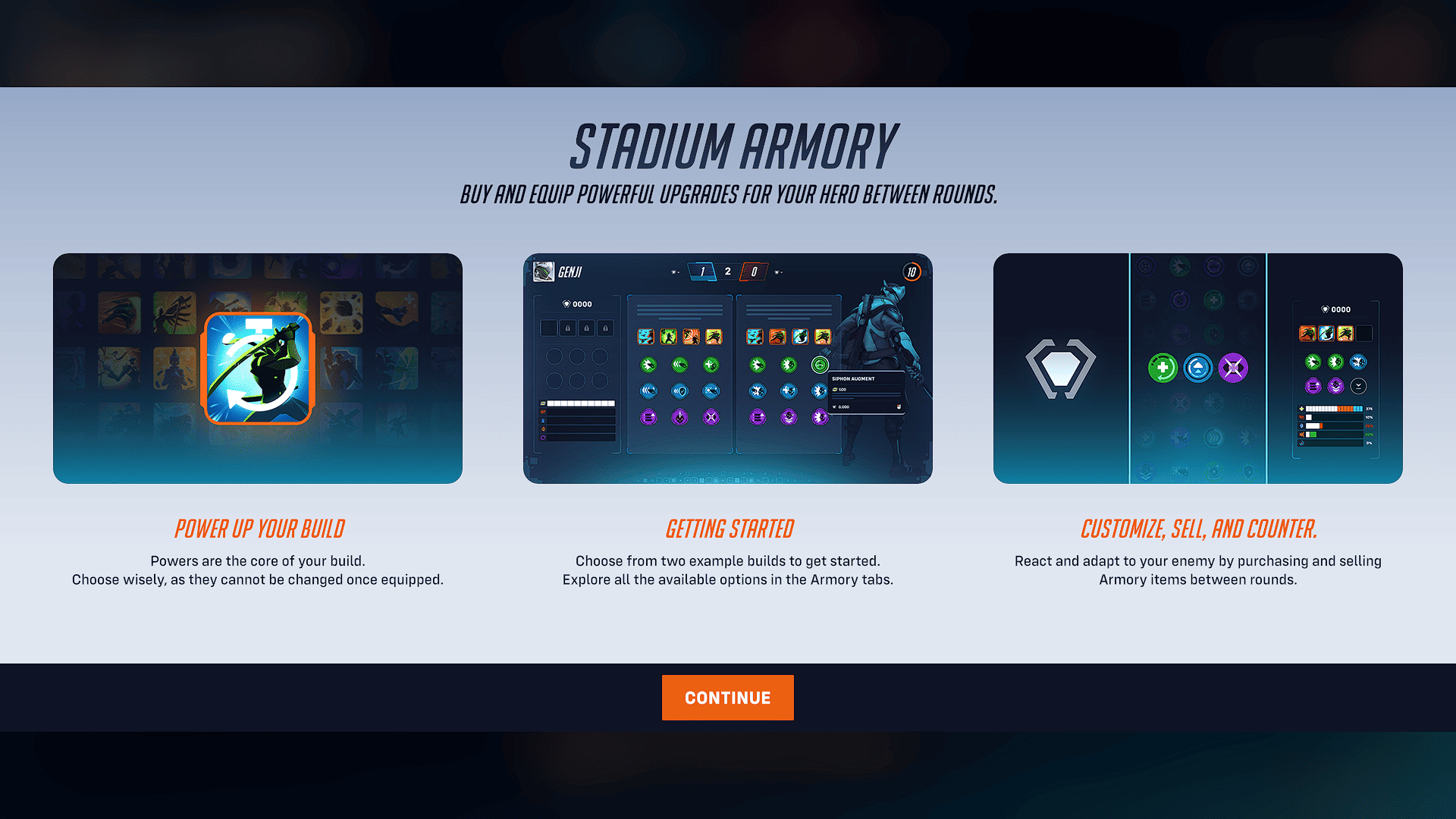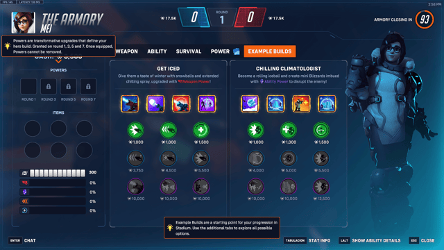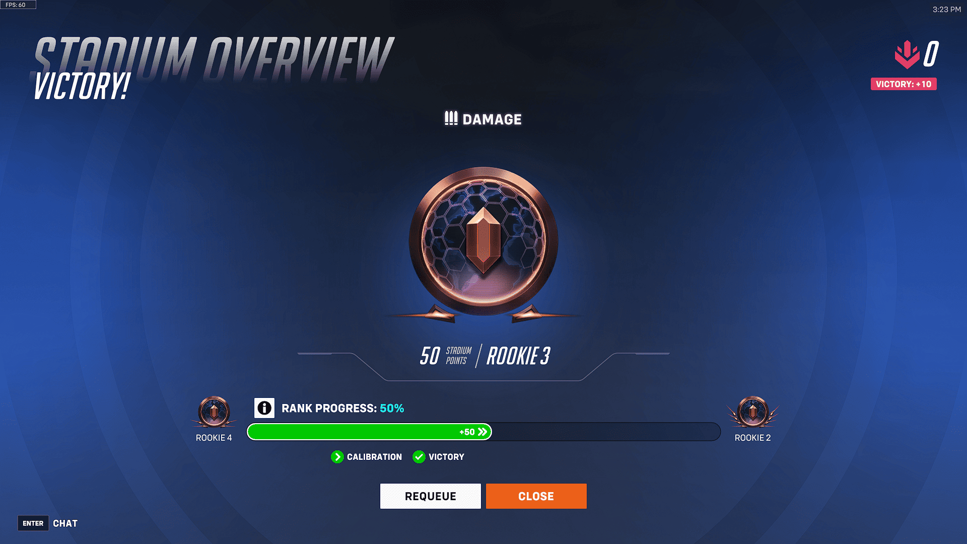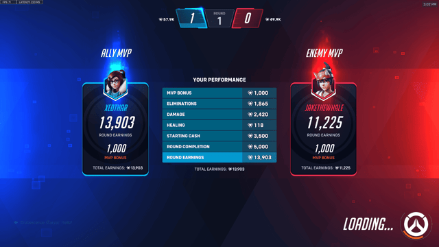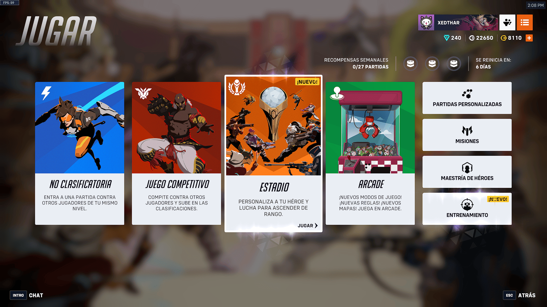 La forma de ganar el efectivo es haciendo daño, eliminando al enemigo, curando y bloqueando. Claro los que ganen rondas van obteniendo un poco más de efectivo. Las habilidades están catalogadas en daño, defensa y supervivencia, en un rango básico, raro y épico que se distingue por colores y precios. Al ser modo competitivo tambien poseemos diferentes rangos los cuales son los encargados de darnos las recomensas del modo Estadio.